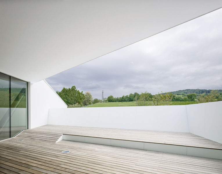 Casa e construită pe un mic deal, într-un sat în apropiere de Viena, pentru o familie tânără. Această clădire, paralelă cu strada de acces, este compusă din subsol, parter și un etaj. La subsol se află garajul și un spațiu pentru depozitare. Terasa din față oferă acces direct la grădină și la piscina.