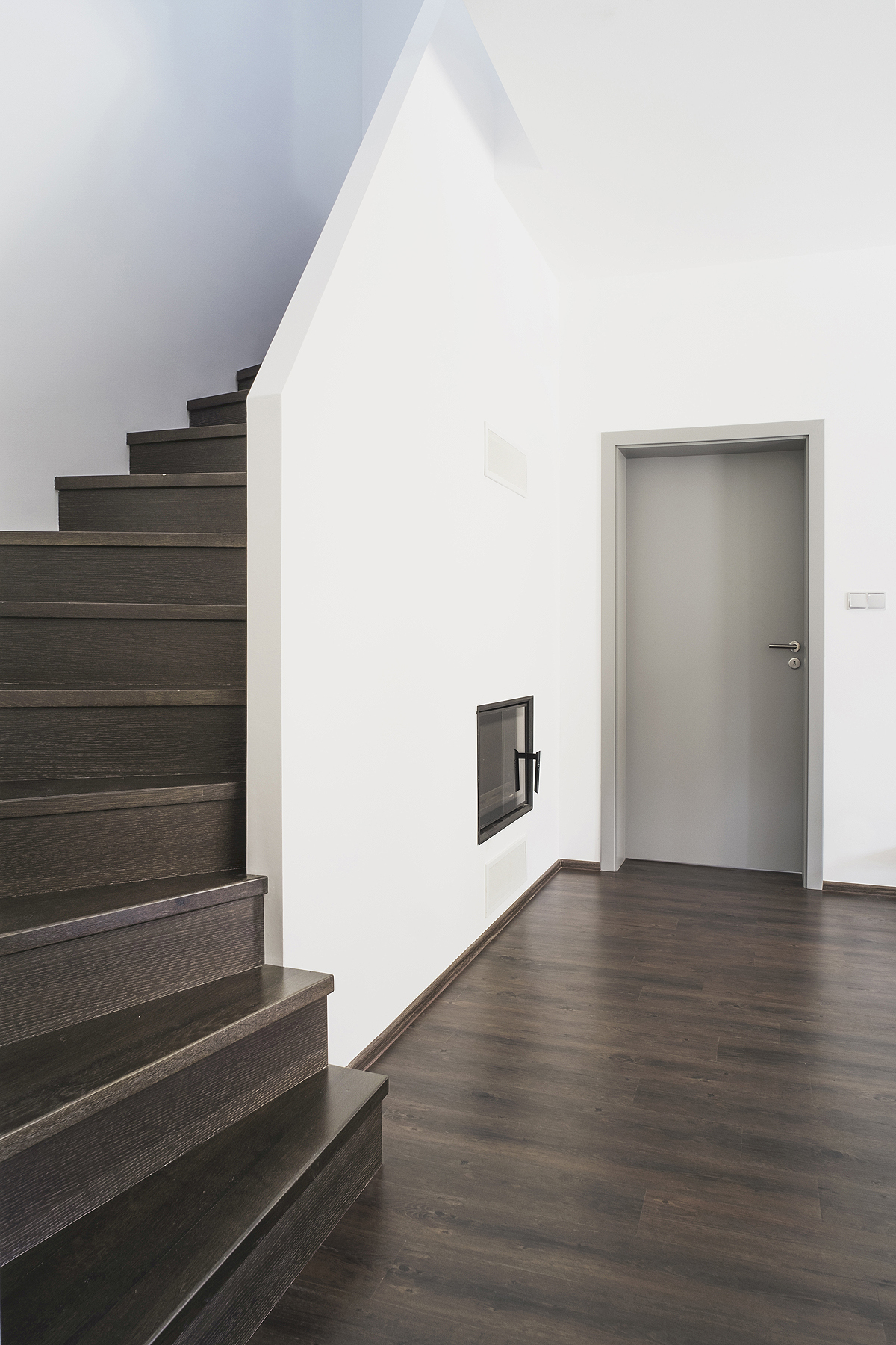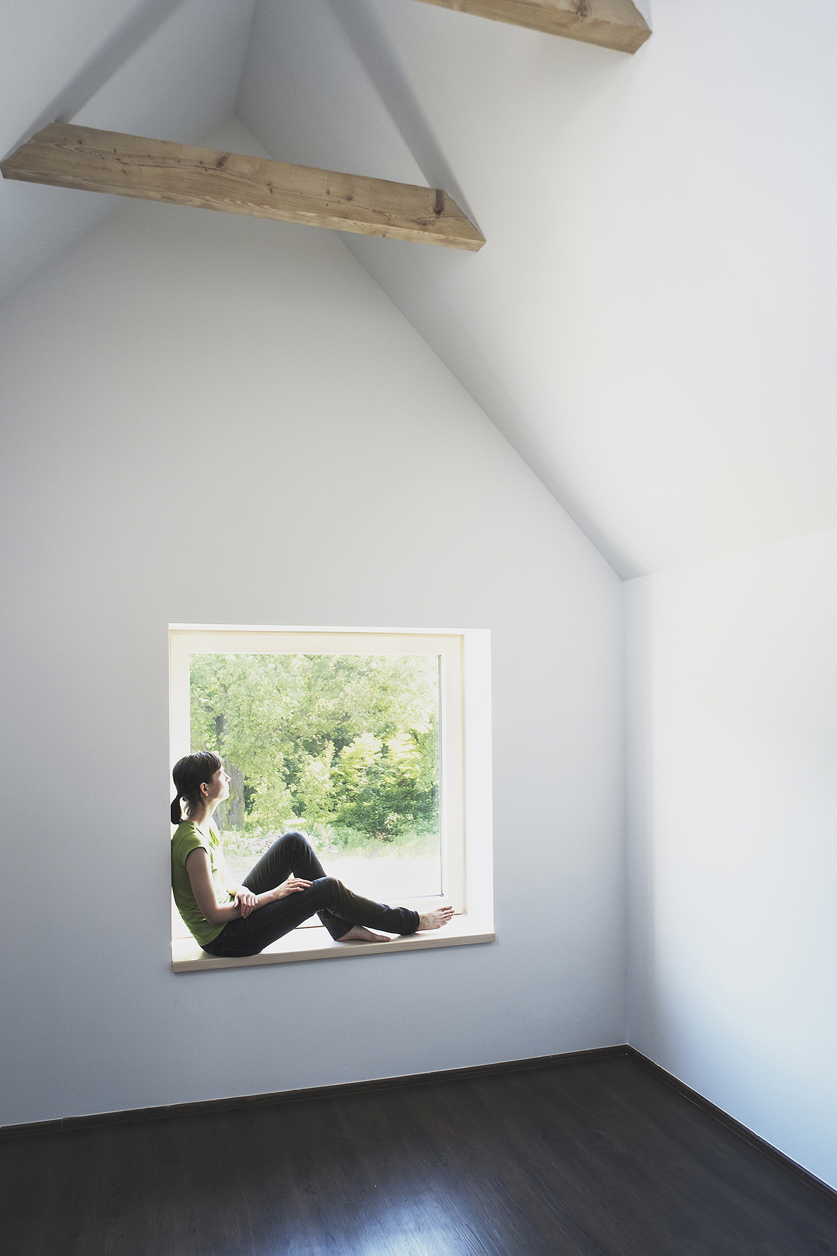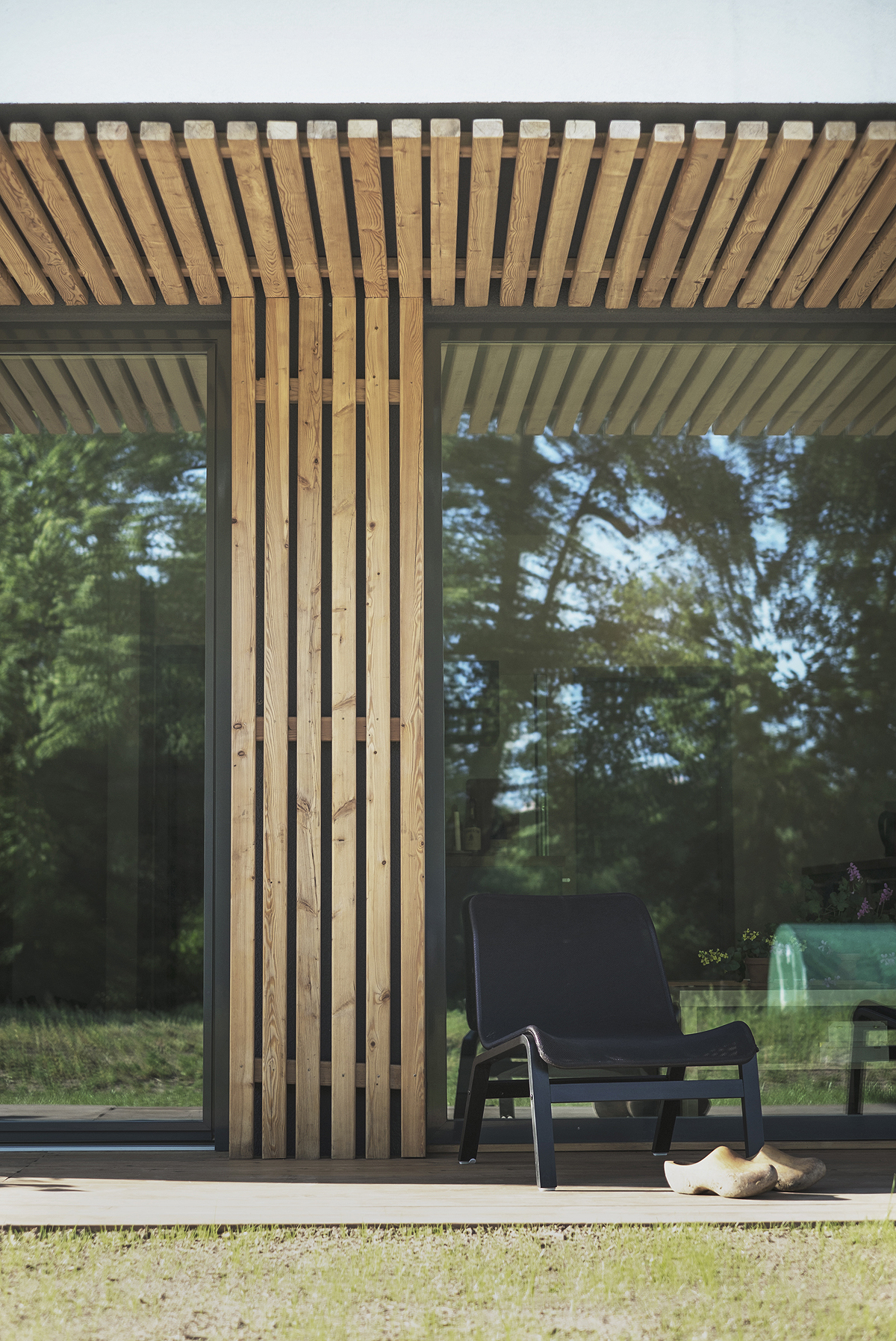 Terasa are un acoperis cu streasina care umbreste partea de sud a fatadei. La etaj, se afla un vestibul si o camera de oaspeti care sunt pozitionate spre sud.