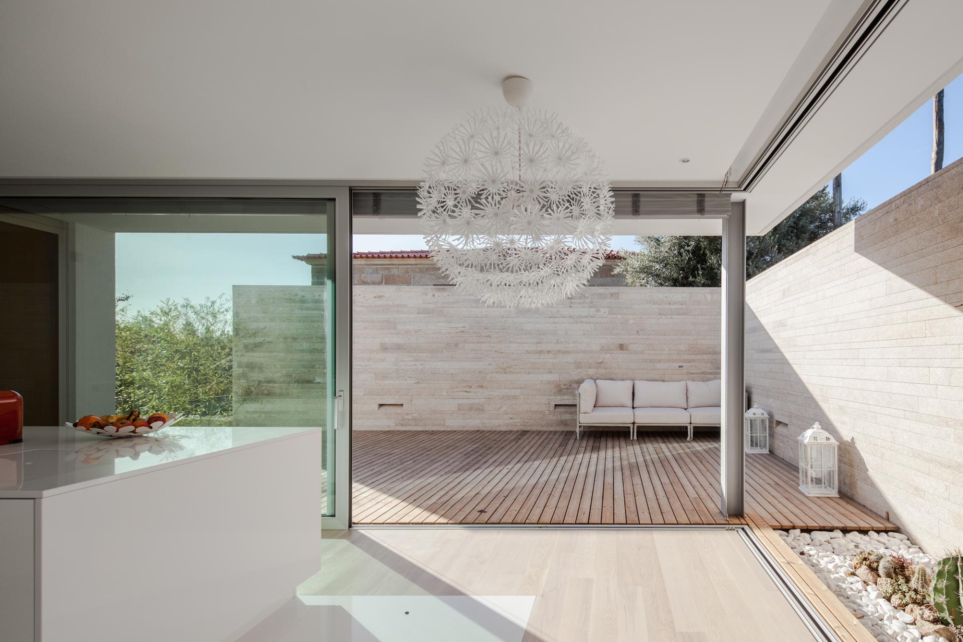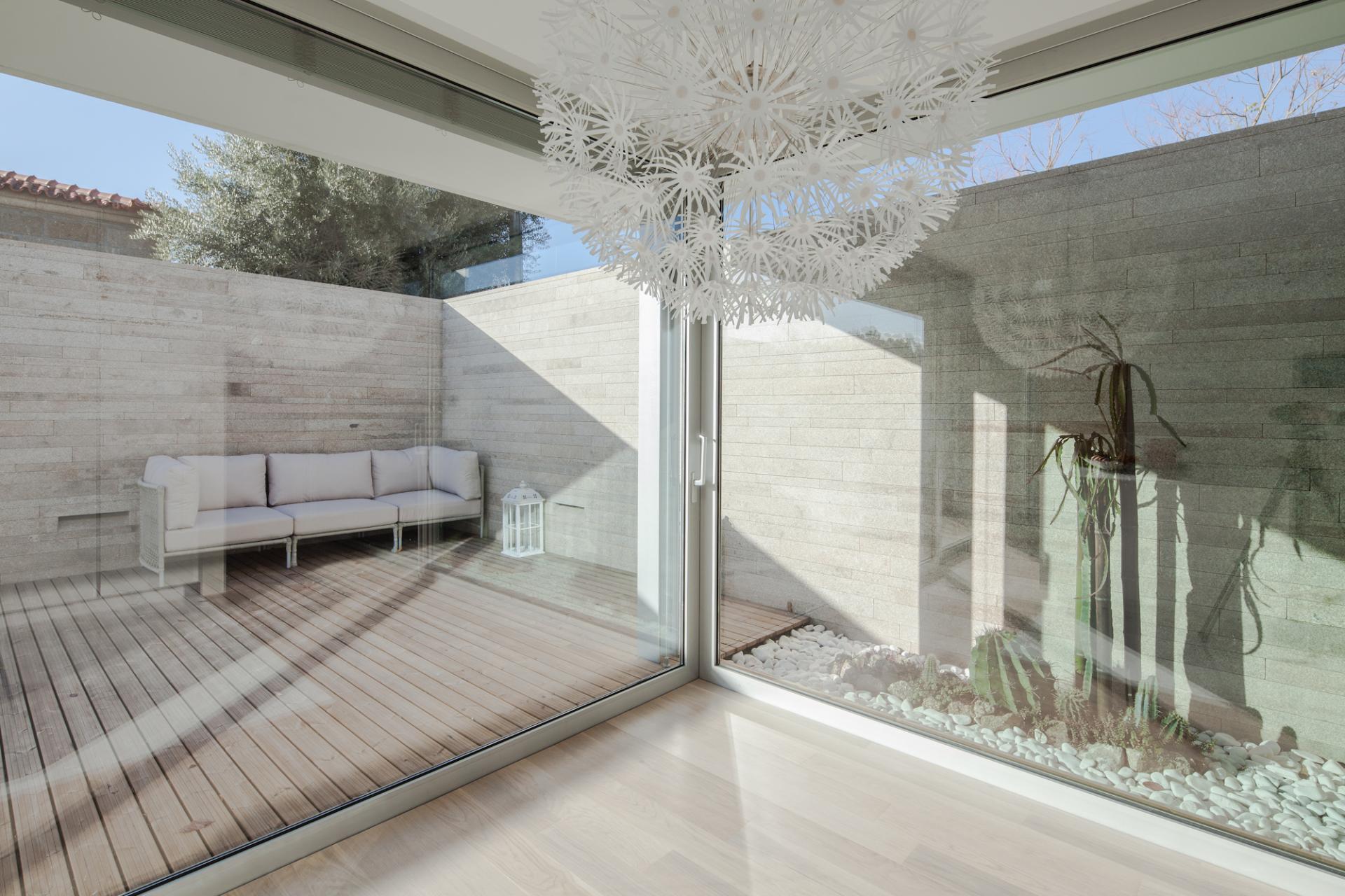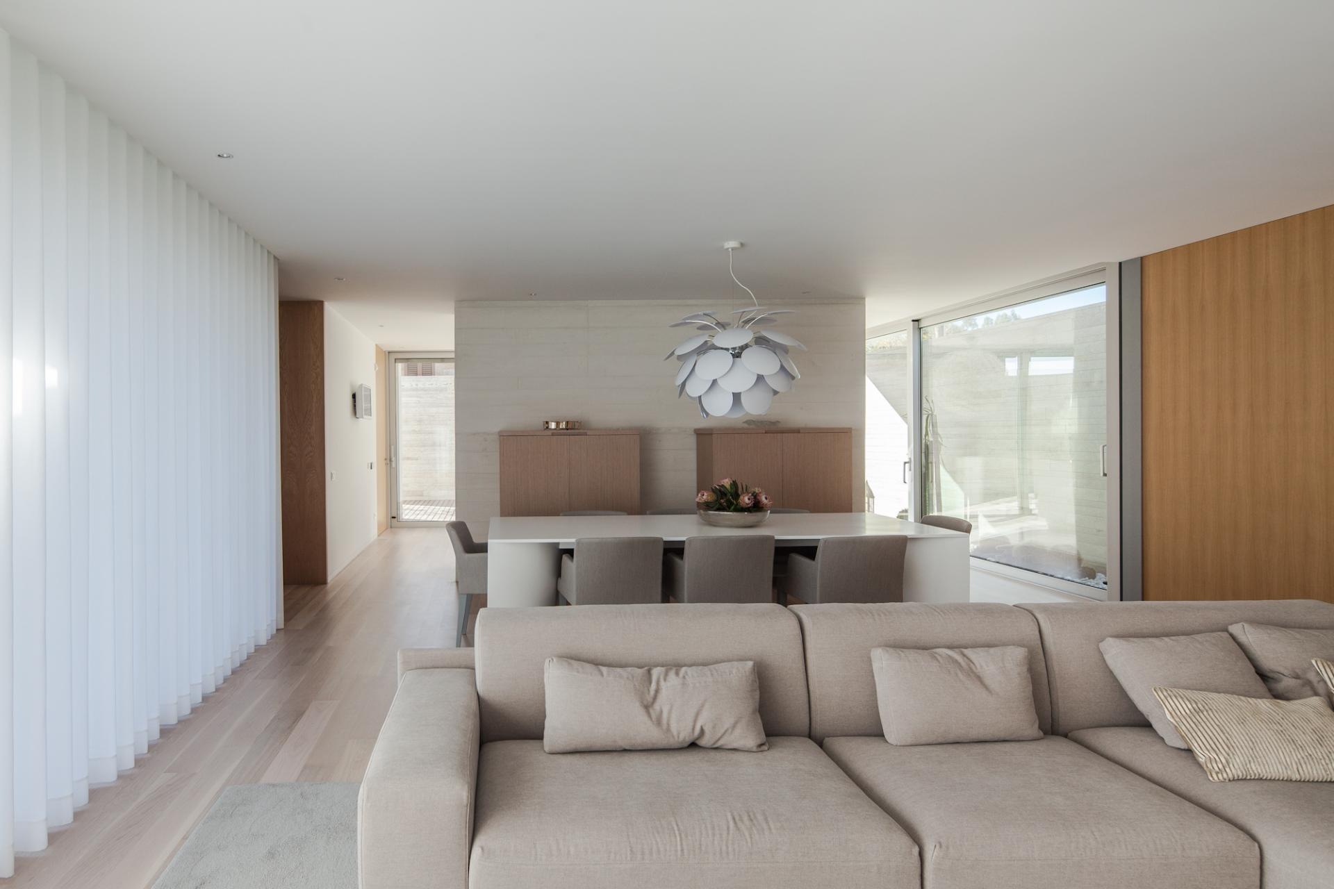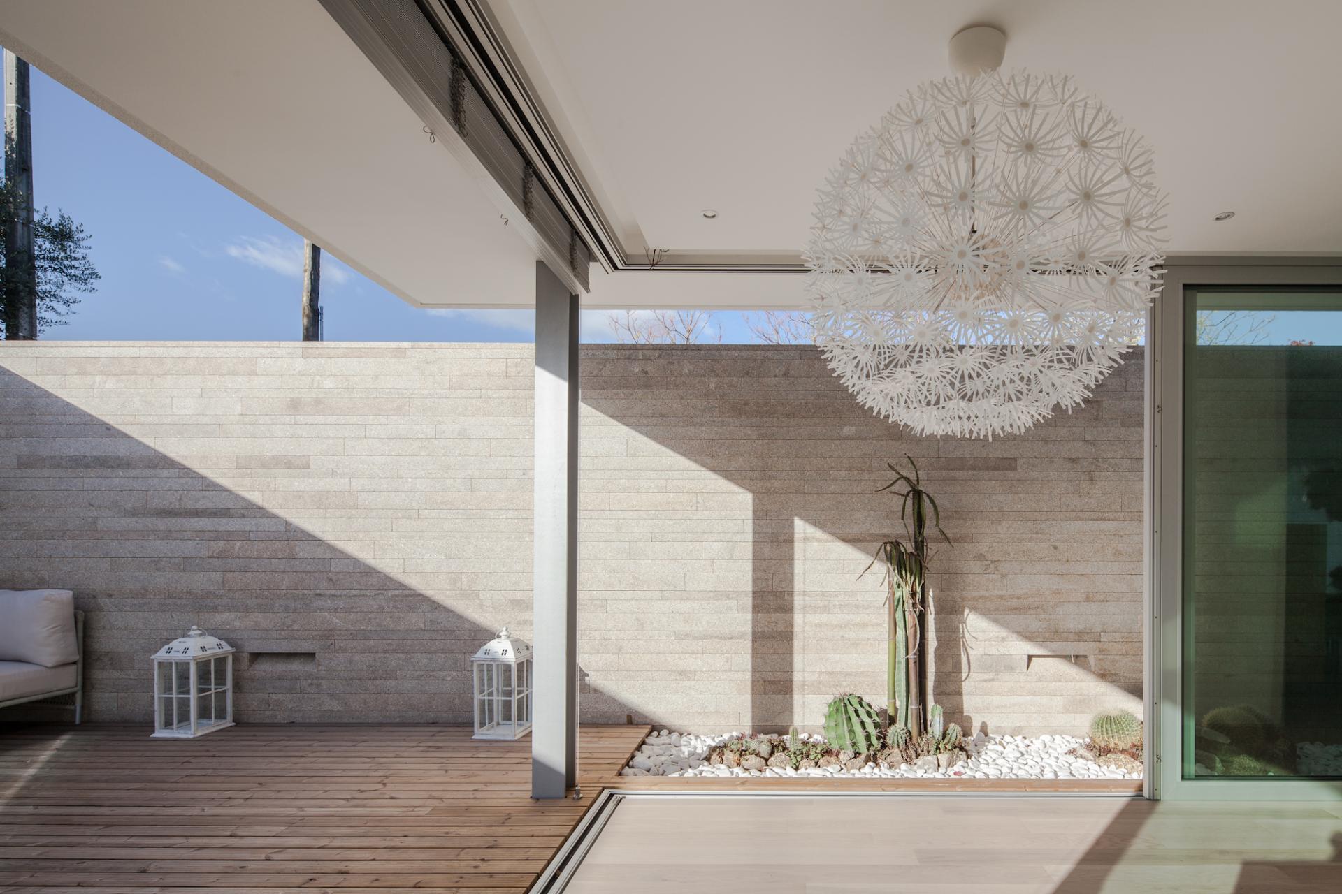 Granitul, care se gaseste in apropiere si materialul special din regiune se aplica in benzi inguste cu diferite inaltimi si lungimi oferind un aspect mai delicat pentru finisaj, scotand in relief orizontalitatea casei. Aceeasi atentie fata de detalii si materiale se regasesti si in amenajarea interioara.
