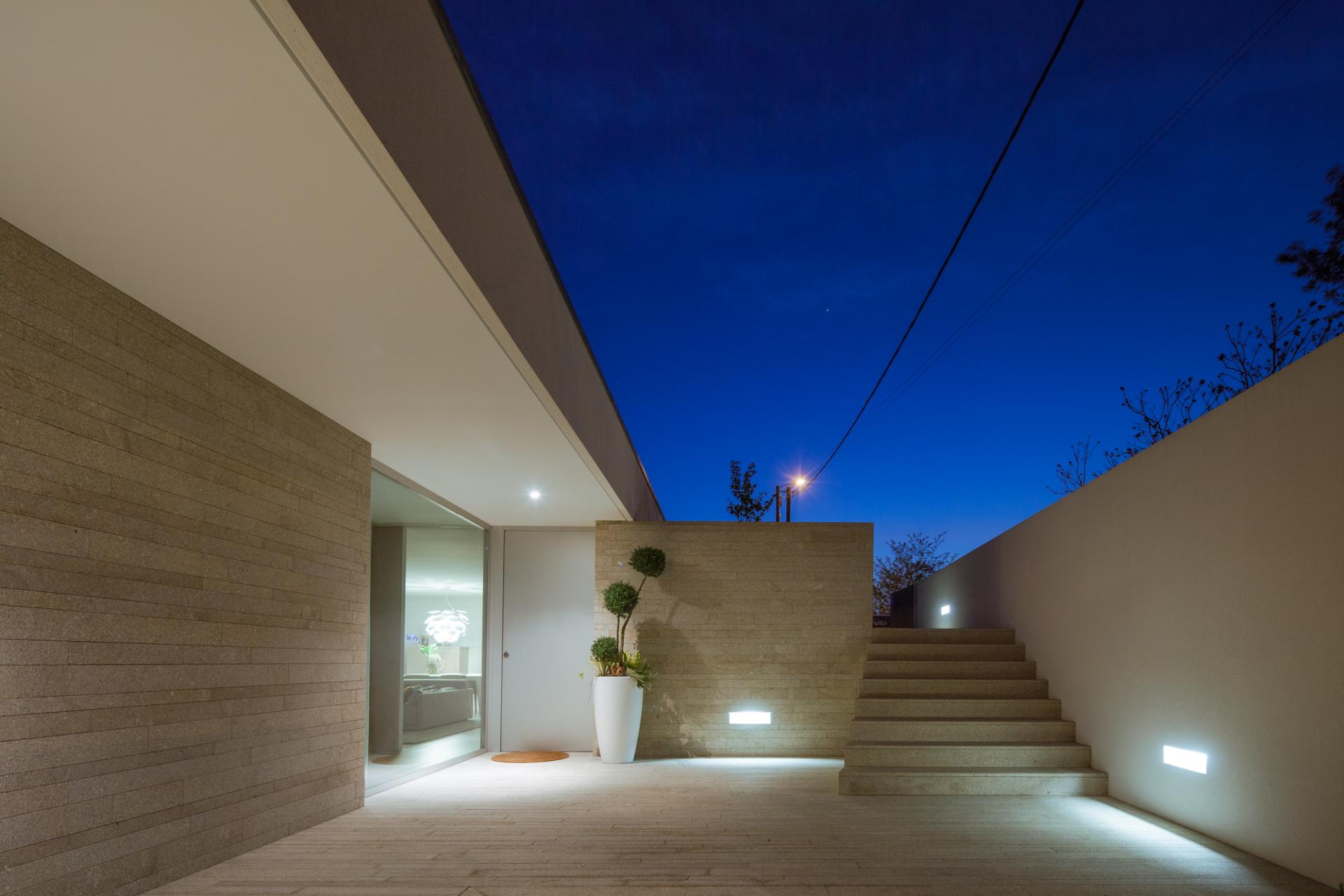 Casa este construita in vale si nu se vede de la strada. Peretii existenti, constructia joasa, crearea de noi planuri verticale si inchiderea ei spre strada dau sentimentul unei case intime ce a fost gandita inca de la inceput.Proiectul casei a avut un aspect deosebit: cele doua dormitoare pentru cele doua fetite trebuiau sa comunice si sa se intersecteze