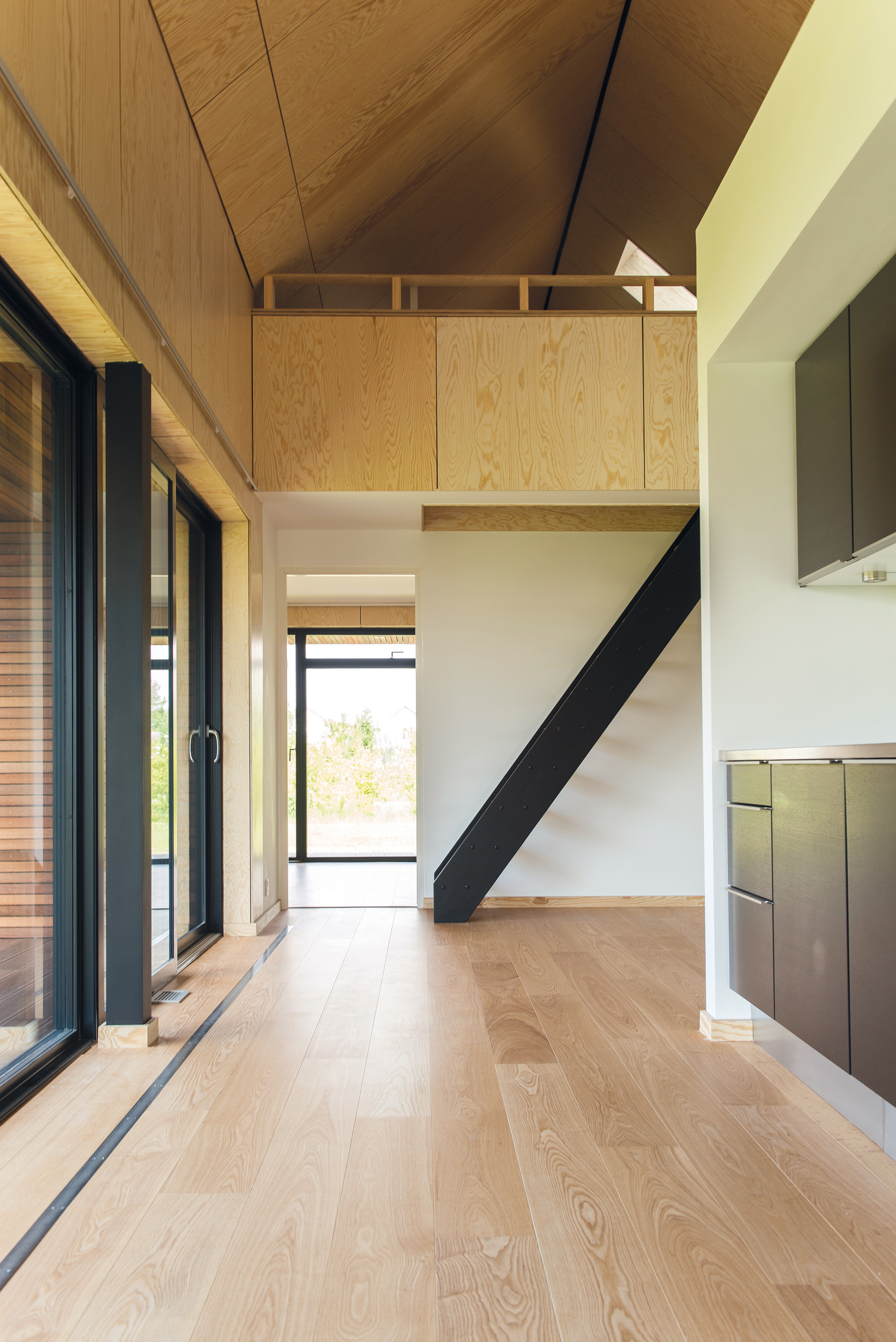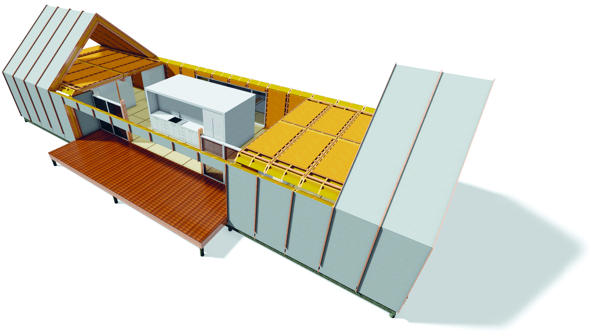 Structura portanta a casei este din lemn: 18 cadre cu auto-sustinere din placaje de lemn de inalta rezistenta prefabricate si asamblate la o fabrica de componente si transportate la locul constructiei. Scopul aici a fost de a fi realizata constructia cu mare precizie si de a evita orice prejudiciu ce ar putea rezulta din inexactitatile tipice ale unui santier de constructii. Obiectivul este o intretinere ieftina si o durata lunga de viata. Acest proces combina cadre exterioare și interioare ale cladirii într-o singura unitate , creand o cladire complet deschisa fara stalpi , grinzi sau elemente de tensiune , asigurand flexibilitatea deplina a casei și o configurație de lunga durata .