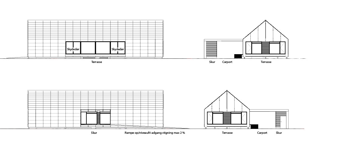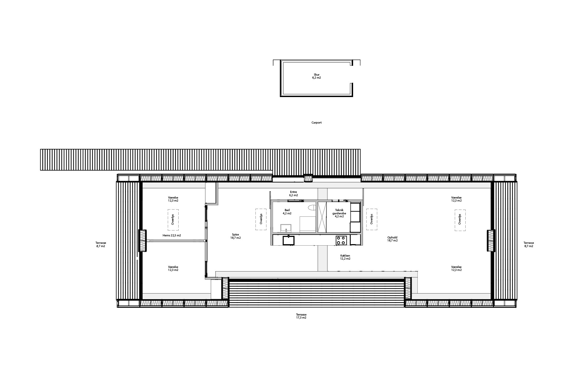 Casa B a fost construita din lemn, o alegere surprinzatoare pentru clima daneza, cu scopul de a avea o durata lunga de viata. Dar in Danemarca sunt multe case din lemn cu o ventilatie excelenta ce duce la o durata lunga de viata a acestora. Structura din cherestea a casei B asigura o ventilatie continua pe toate laturile, mai ales sub casa care a fost ridicata pe o serie de fundatii izolate.