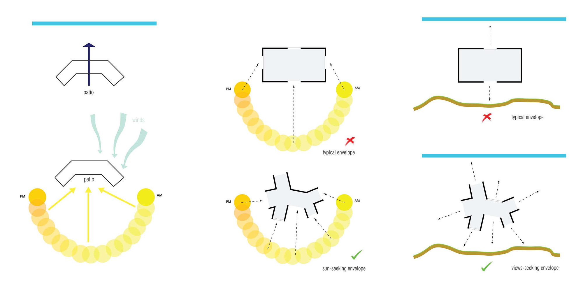 Echipa de arhitecti au conceput un design care sa raspunda in principal la aceste probleme frangmentand casa intr-o serie de cuburi cu o fatada integral vitrata, pozitionate la anumite unghiuri in plan astfel incat sa beneficieze de cat mai mult soare. „Casa este in sine un mare colector al energiei solare, un mijloc prin care lumina si caldura pot patrunde in fiecare camera – asemeni unei palarii de floarea-soarelui” declarau arhitectii.