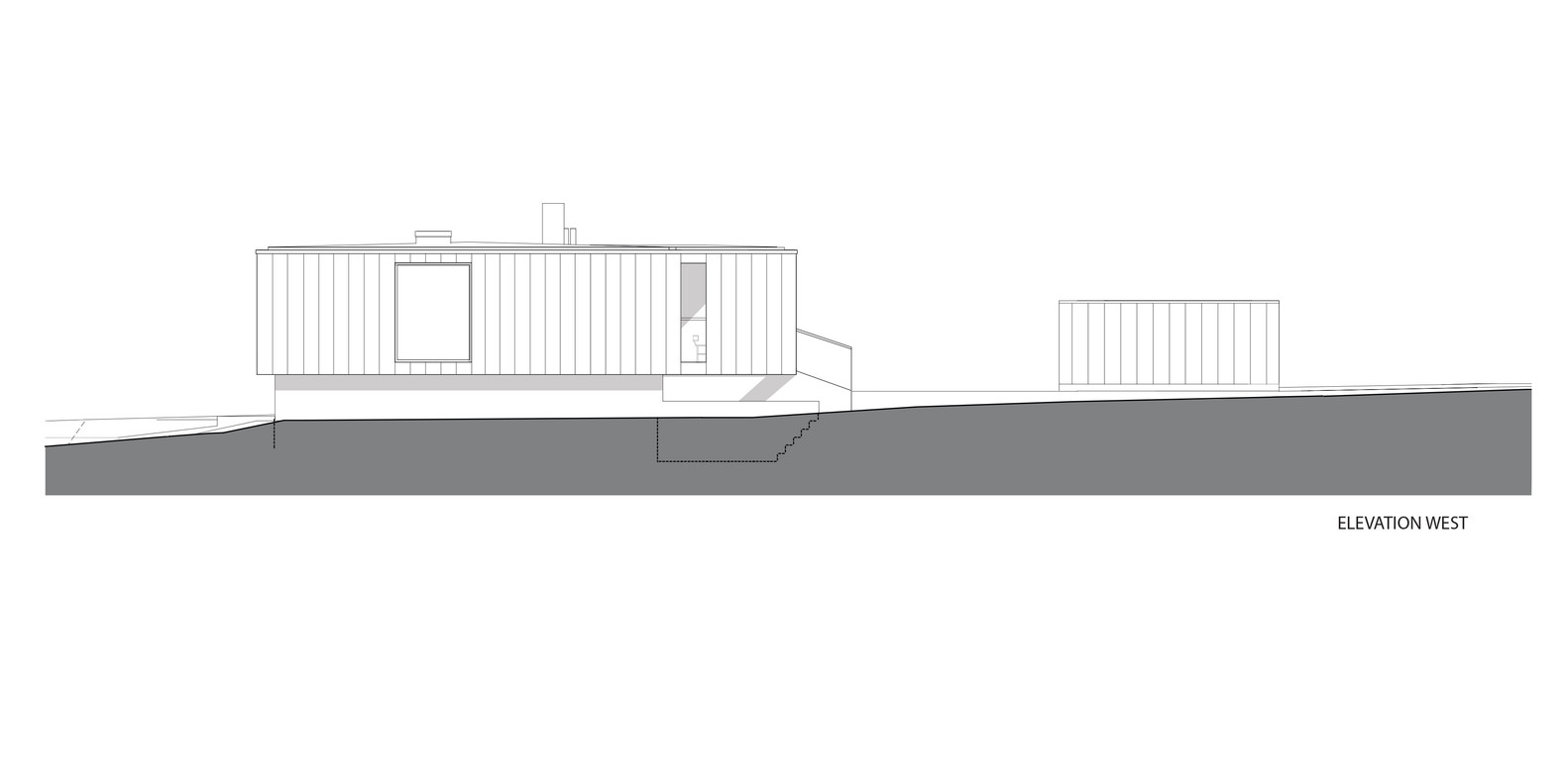 Volumul dreptunghiular inchis in tabla de zinc pluteste deasupra acestei baze si gazduieste zonele de zi. Acestea au fost orientate incat sa priveasca spre padure si sa beneficieze de lumina naturala din plin, pe tot parcursul zilei.