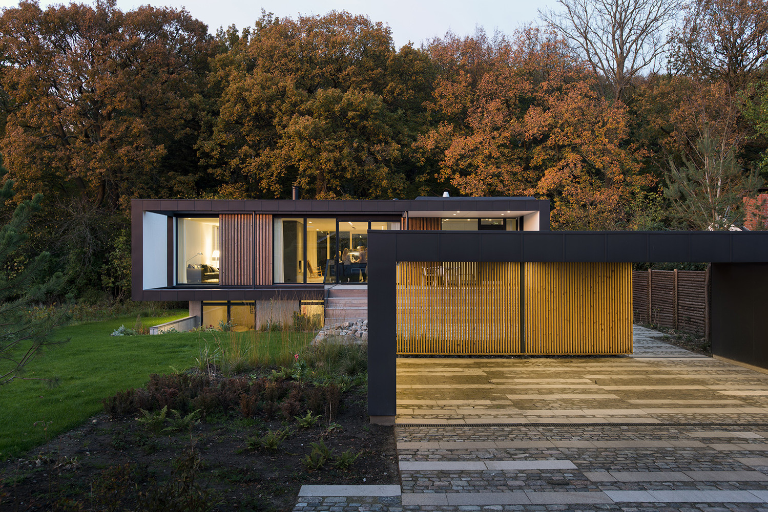 Amplasata langa o padure cu vegetatie bogata, locuinta beneficiaza de o legatura directa cu natura inconjuratoare prin intermediul diferitelor suprafete vitrate, frunzisul copacilor actionand ca un fundal, mereu schimbator, pe masura ce trec anotimpurile.