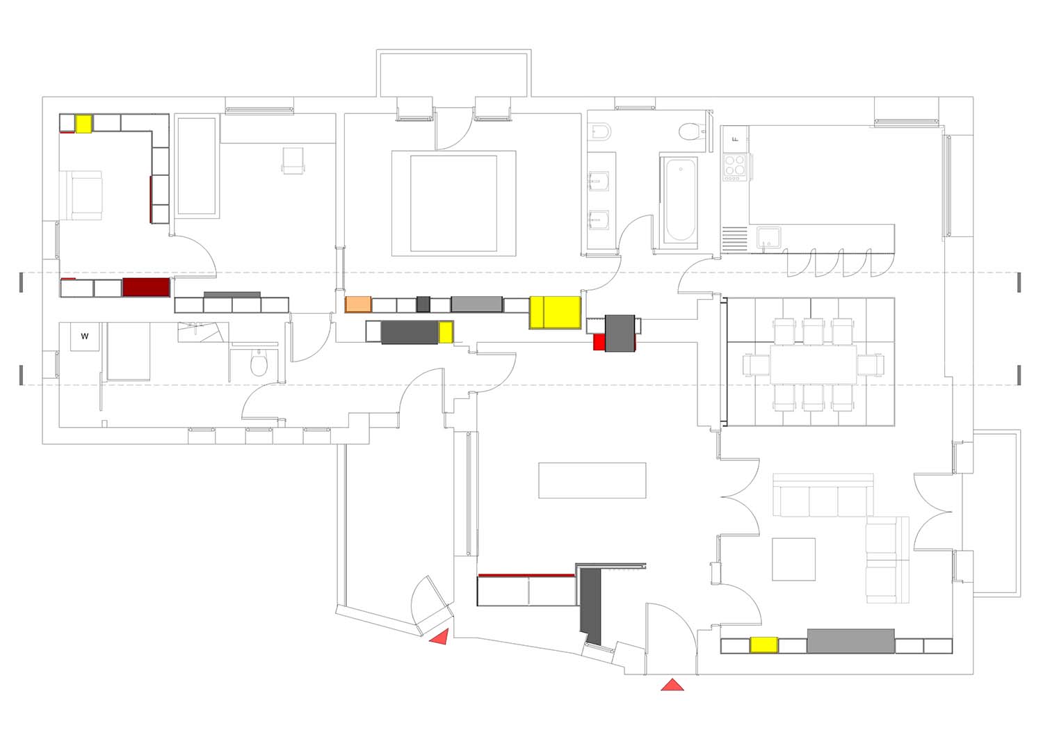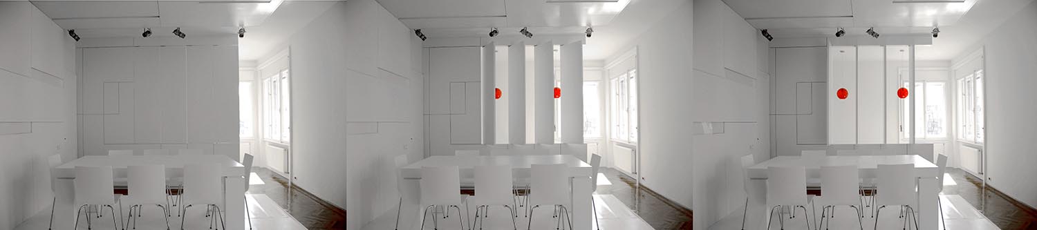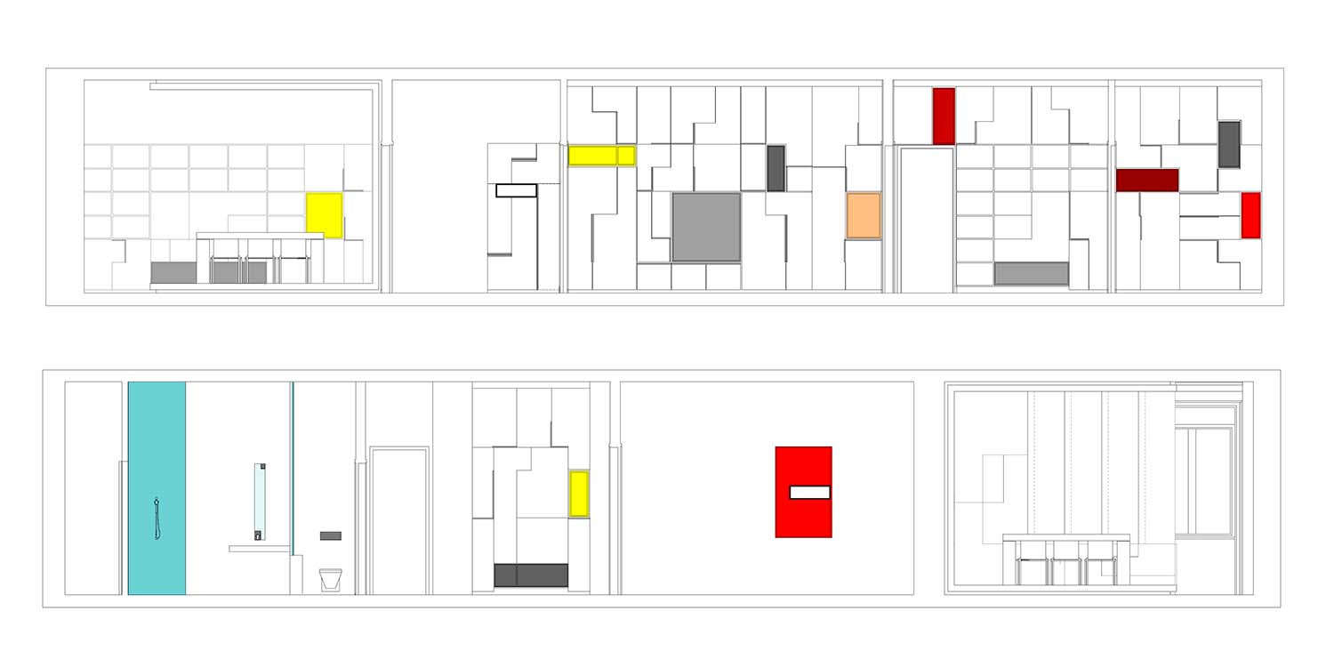 Efectul amenajarii mizeaza pe contrastele dintre suport/insertie, vechi/nou, permanent/efemer. Temele proiectului sunt ritmul panotarilor pieselor de mobilier, taieturile si decupajele acestuia care urmeaza ritmurile si modularile unei idei de muzicalitate. Obiectele de mobilier si compartimentarile zonifica si organizeaza spatiul, dictand intreaga desfasurare a activitatii interioare. Prin concept mobilierul depaseste conditia de obiect static in spatiu si participa dinamic in definitia apartamentului.