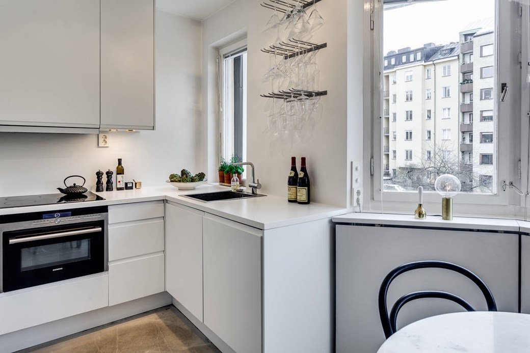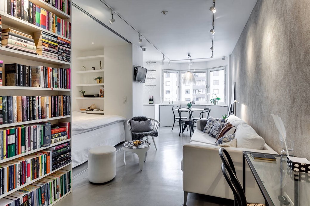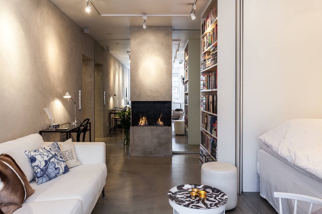 Designerul suedez Alexander White a propus aceasta solutie, usor claustrofobica, de a amenaja zona de dormit ascunsa intr-un dulap. Ideea este destul de practica avand in vedere ca intreg spatiul din aceasta garsoniera din Suedia este de numai 34 m². Datorita acestei abordari multifunctionale , zona de zi este foarte usor de separat de cea de seara, iar spatiul ramas primeste o oarecare amplitudine.