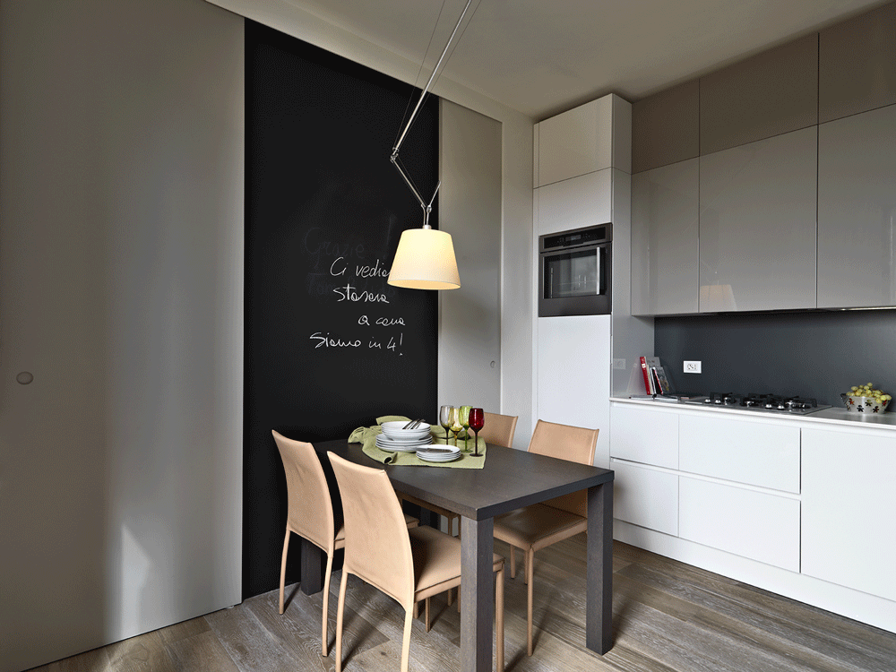 In interiorul unei cladiri istorice, o mica garsoniera de 35mp din Milano a prins viata printr-o amenajare inteligenta si plina de farmec realizata de arhitectul Tommaso Giunchi. Dormitorul este separat de zona de zi printr-un perete glisant, ce face ca aceasta amenajare in tonuri de gri sa fie cat mai practica si multifunctionala.