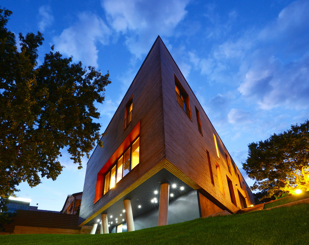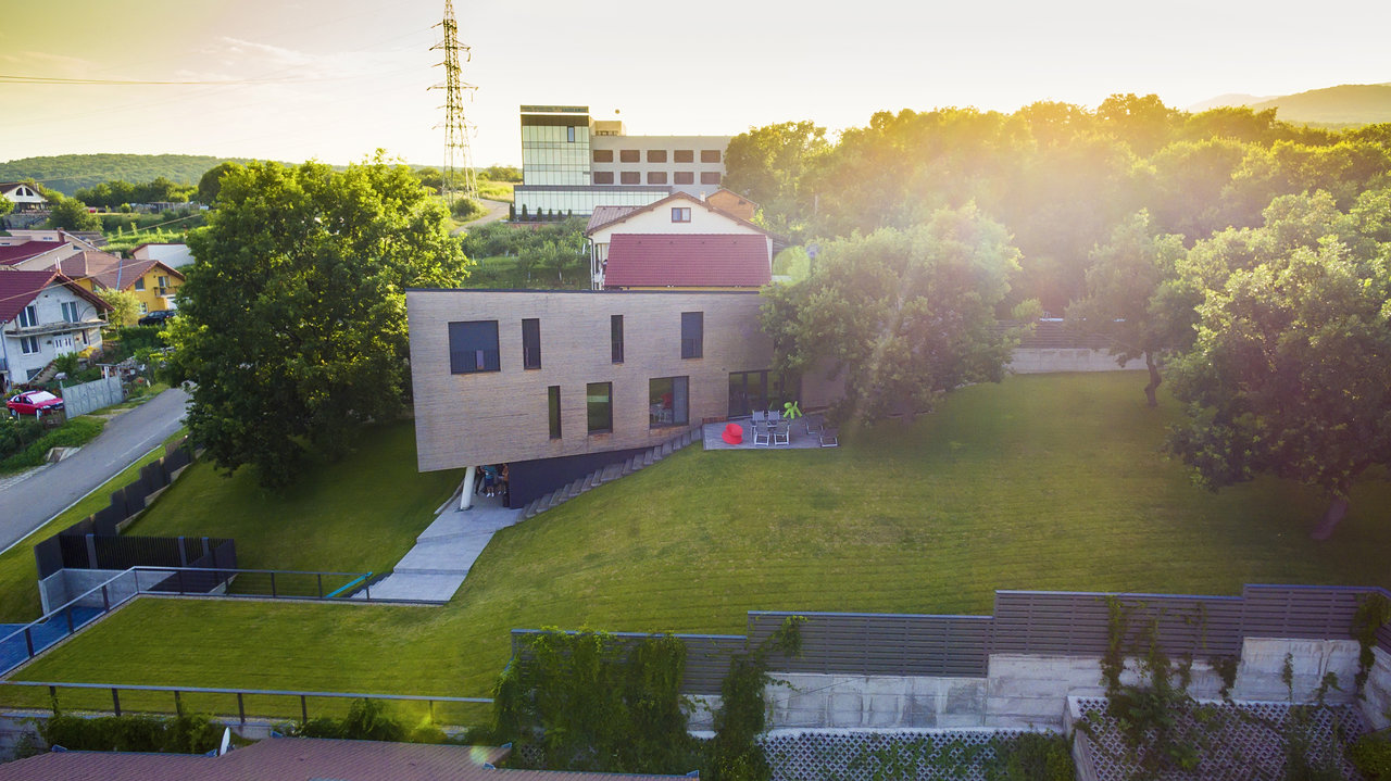 Volumul rezultat este unul sculptural, formă si prezență pe care au accentuat-o prin dispunerea golurilor și folosirea texturii materialelor de finisaj.