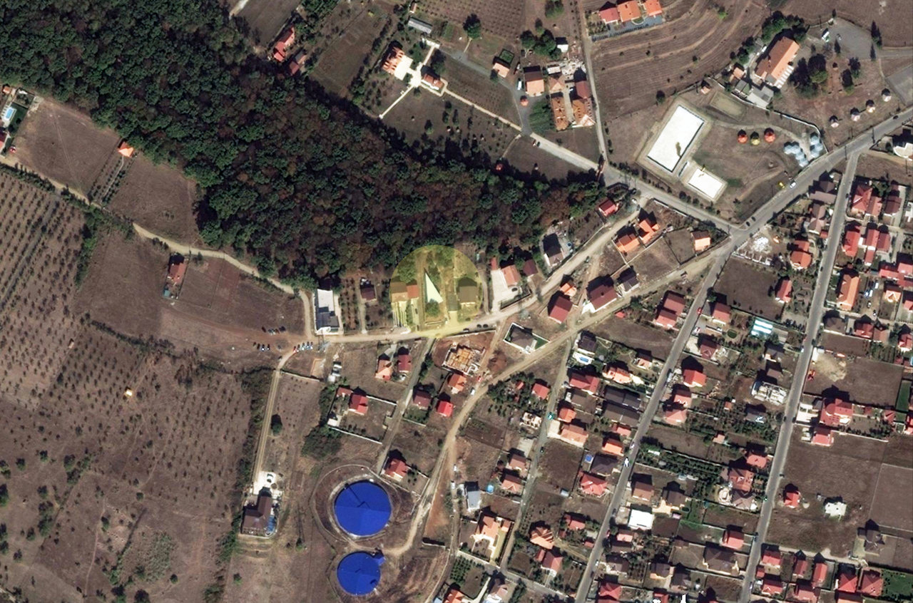 Aflată într-o zonă parțial împădurită, la liziera unei păduri de stejari, terenul are o înclinație expusă către sud. Tema de a integra armonios clădirea trebuia să țină cont, pe lângă înclinarea naturală a terenului, și de prezența spectaculoasă a trei stejari care dominau locul prin înălțime și forma coroanei.