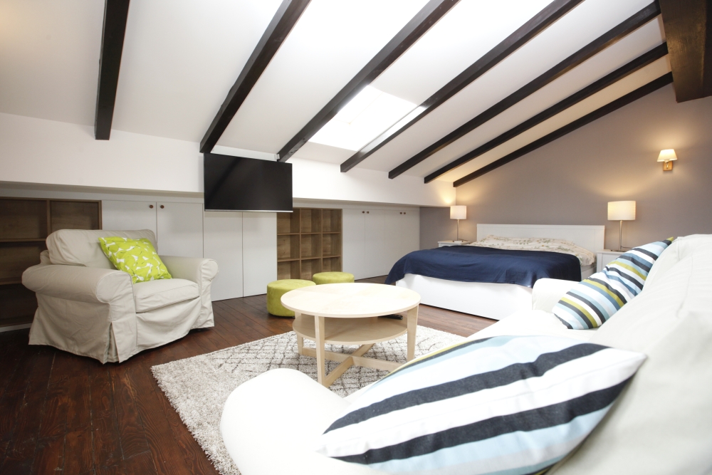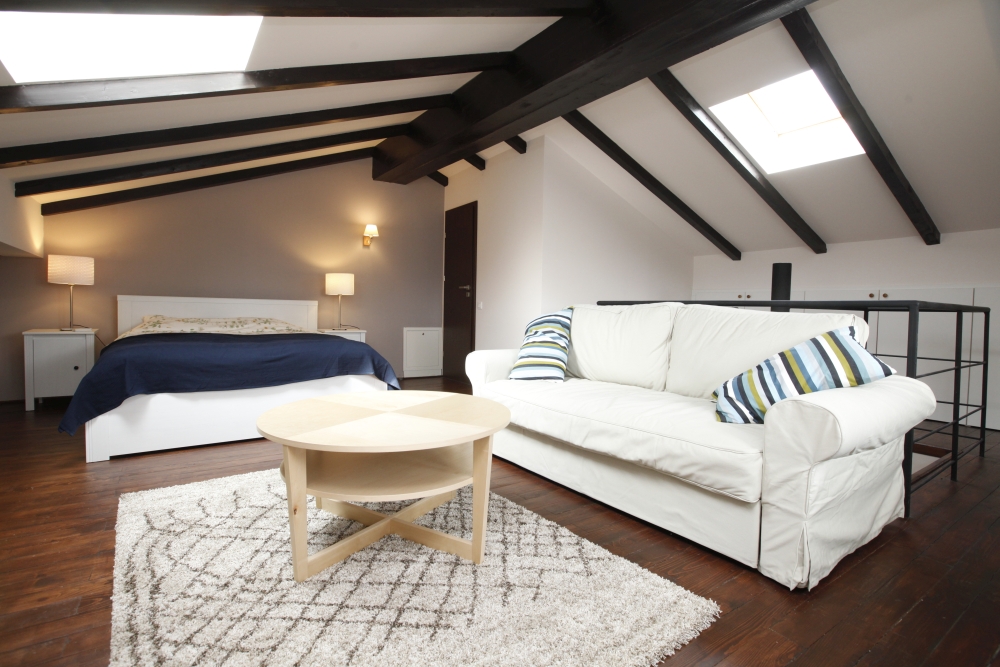 Parterul este un spatiu prietenos si deschis catre socializare si intalniri mari de familie, dar cu zonificari bine delimitate vizual. Livingul inalt si spatios cu candelabrul de sticla, tavanul cu supantă, susţinut de grinzi din lemn si peretele placat cu travetin, reprezinta piesa de rezistenta a casei. Diningul, cu cateva trepte mai sus, este accentuat tot de un candelabru glam, si bucataria foarte minimalista, in alb si negru, pune accent pe functionalitate. Peretele comun dining-bucatarie, tratat cu vopsea decorativa albastra vine sa contrasteze cu marele perete de travertin si sa balanseze gama cromatica dominata de culori calde.La etaj se afla trei dormitoare cu doua bai si un dressing, unde s-a mers pe decoruri intime, odihnitoare, în culori calde si naturale. Preferata echipei JoocaStudio este camera fetitei, un spatiu jucaus cu o lumina diafana unde peretii sunt pictati chiar de ei. La mansarda a fost amenajat un studio pentru oaspeti, cu baie proprie. Mobilierul a fost realizat pe comanda, inclusiv canapeaua, patul si alte elemente tapitate, insa au folosit si unele piese Ikea pentru echilibrarea bugetului. La final, proiectul a imbinat cu succes gusturile si personalitatile celor doi, iar vila a devenit caminul lor mult visat.