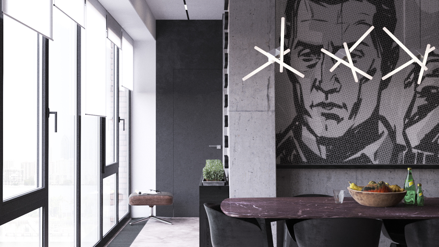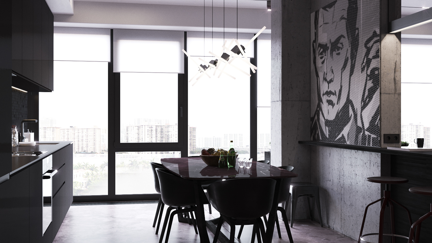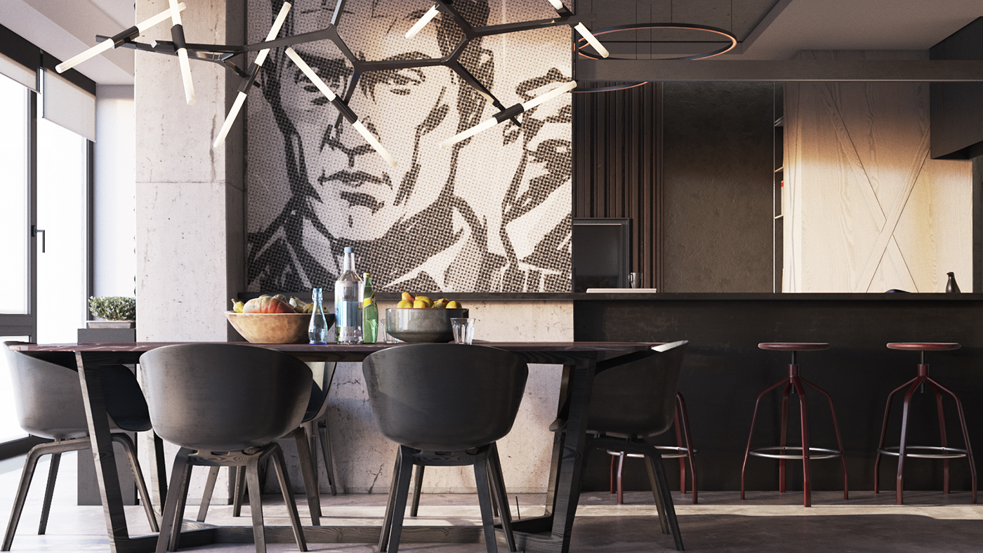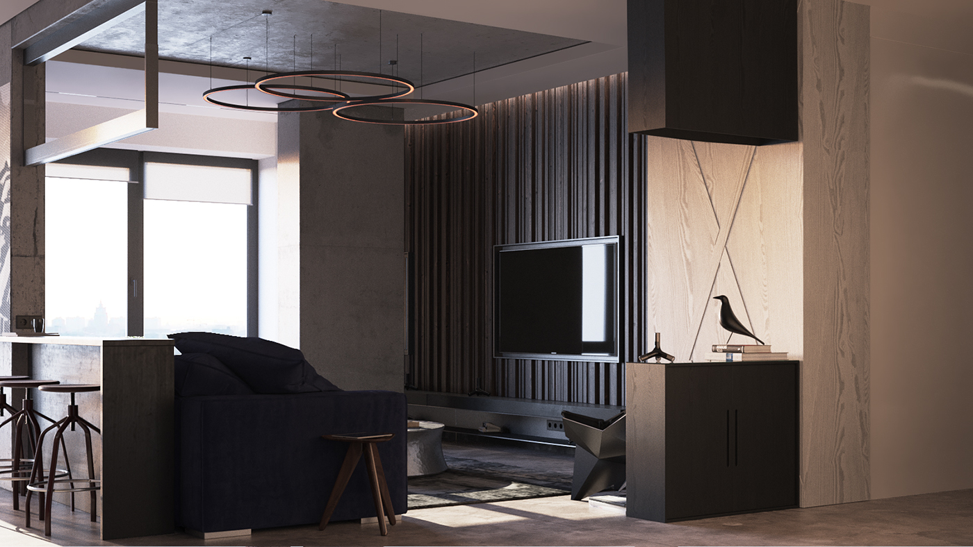 Numele spune totul. In opinia mea, asa trebuie sa arate un apartament adevarat, pentru o personalitate puternica si unica. Probabil de la aceasta idee a plecat arhitectul Maxim Nizovkin cand a realizat amenajarea acestuia. Nuantele inchise, texturile de lemn natur, beton aparent, culoarea canapelei si restul detaliilor atent alese, dau un aer sofisticat, plin de mister si eleganta intregului apartament. An nou fericit va doresc, plin de realizari si multa sanatate !