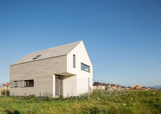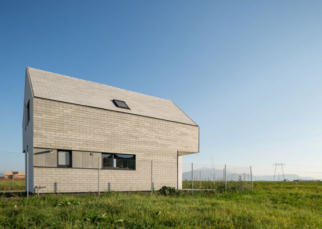 A fost ridicata destul de repede gratie unui sistem de materiale modulare (structura din lemn, pereti au o grosime de 25cm) care au putut fi montate direct pe amplasament. Chiar daca materialele folosite sunt simple, locuinta iese in evidenta fiind diferita de casele din jur. Placi cu ciment in compozitie au fost folosite pentru acoperis si continua pe doua dintre fatade, pentru un aspect compact, unitar.