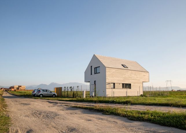 Casa OM este un proiect interesant, semnat si realizat de arhitectii de la Insert Studio, o constructie pe cat de simpla posibil pe atat de contemporana. Designul inovativ presupune doua colturi taiate care amintesc de verandele caselor traditionale, fiind astfel o legatura cu peisajul rural romanesc. Casa este realizata in satul Harman, judetul Brasov, fiind locuinta unei familii cu buget limitat care si-a dorit sa paraseasca apartamentul din bloc si sa locuiasca intr-o casa pe pamant, eficienta din punct de vedere energetic care sa aiba costuri reduse de intretinere.