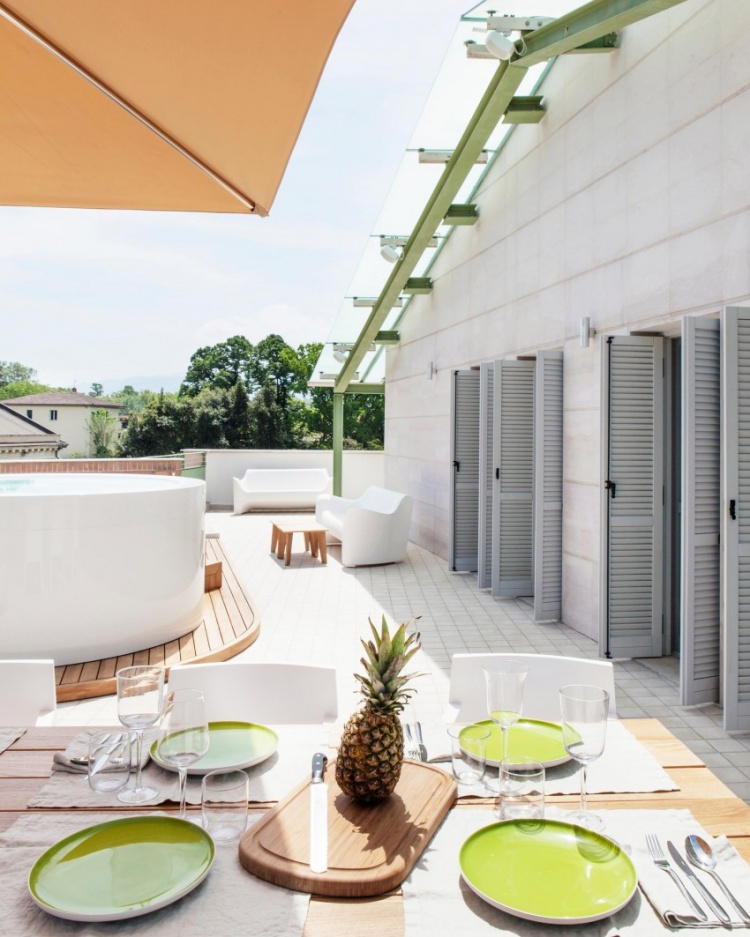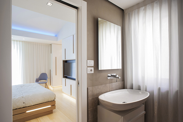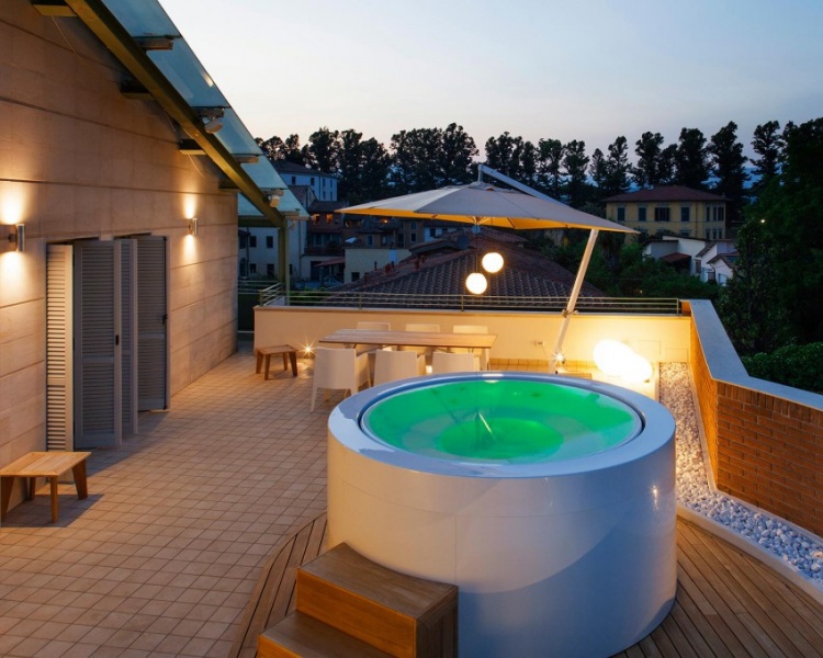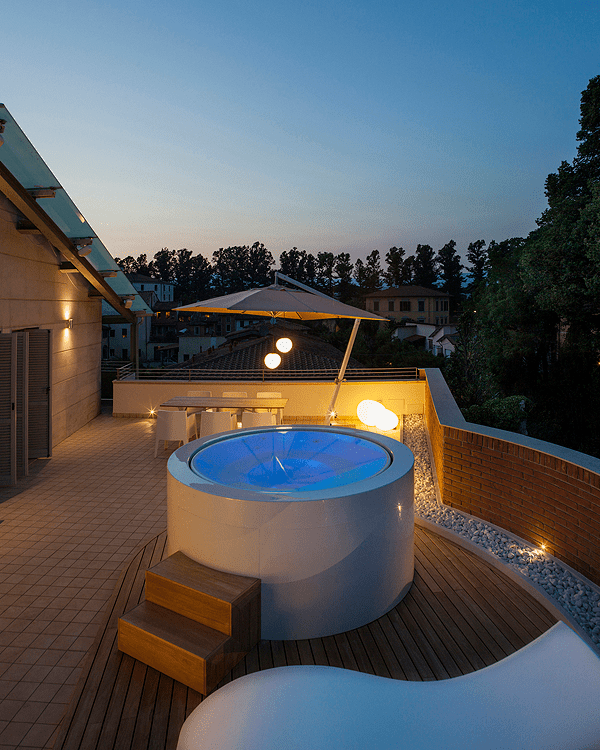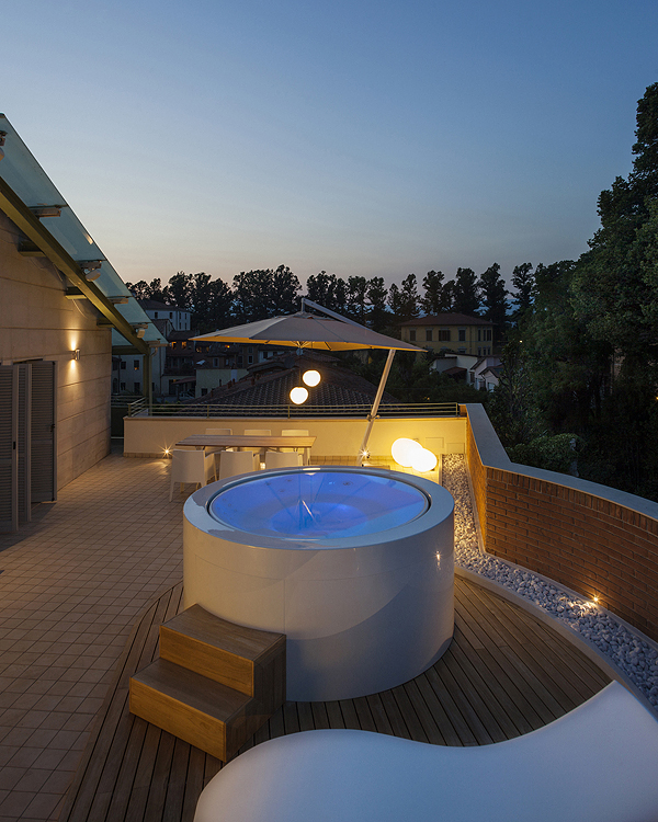 O casa in miniatura, in stilul minimalist al designerilor studioului Studiòvo, este amplasata intr-un loc retras al Toscanei, Italia. Suprafata utila a casei de aproximativ 120mp a fost inglobata intr-o volumetrie simpla. Casa se imparte in zona de zi, doua dormitoare, doua bai, o baie turceasca (hamman) si o terasa extraordinara cu o imagine panoramica asupra peisajelor. Paleta de alb si gri neutru a fost presarata cu pete negre pentru a aduce rafinament in amenajare. Parchetul masiv din stejar si mobila moderna creeaza o imagine unitara si plina de confort. Sistemul de iluminat a fost gandit intr-un mod ingenios, astfel incat si proprietarul si oaspetii pot sa isi stabileasca cantitatea necesara de lumina. Terasa ofera imagini minunate asupra orasului vechi. Pentru a aduce valoare si spatiului exterior, terasa a fost dotata cu un mini bazin cu hidromasaj si o zona confortabila pentru odihna.