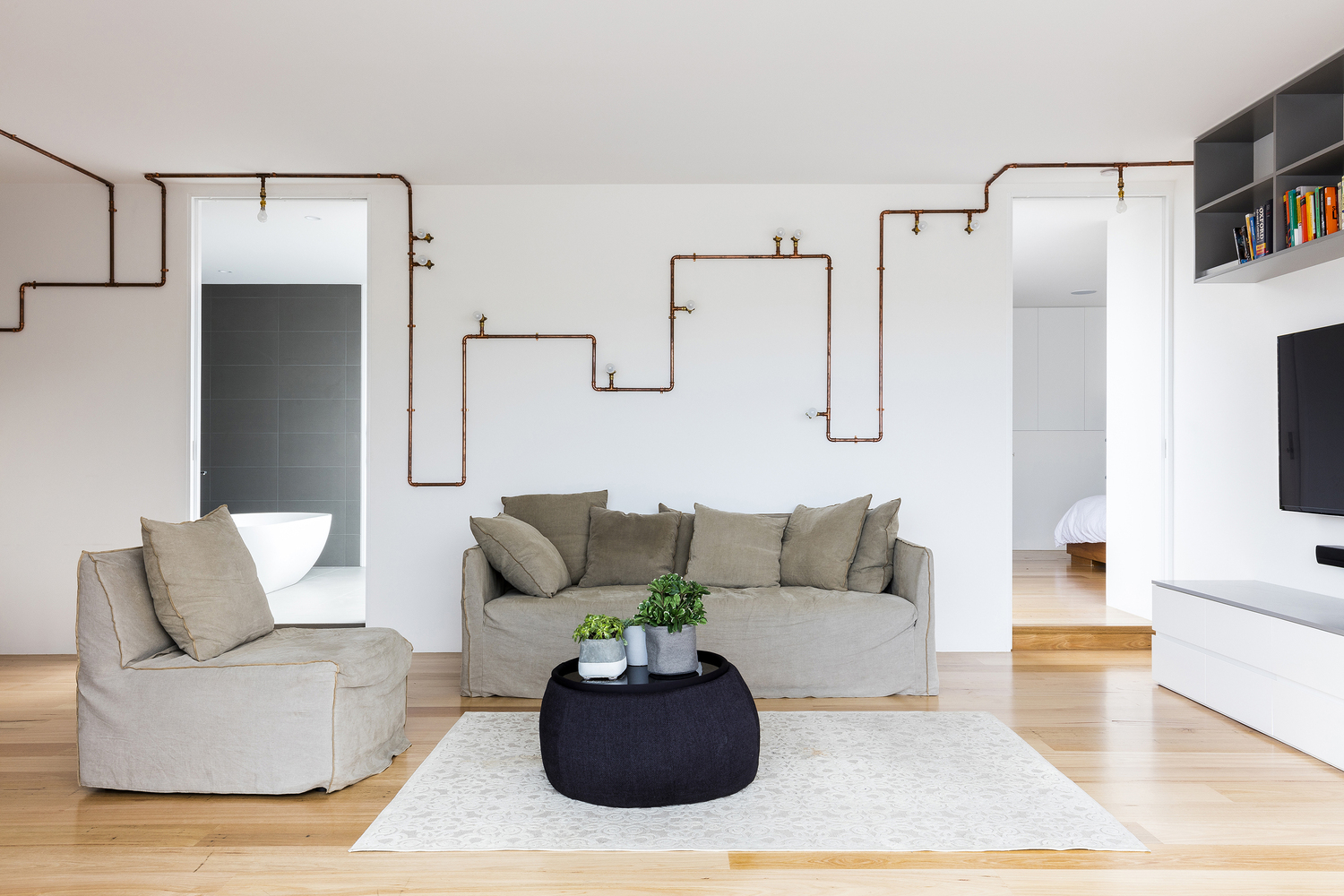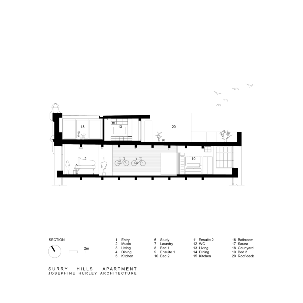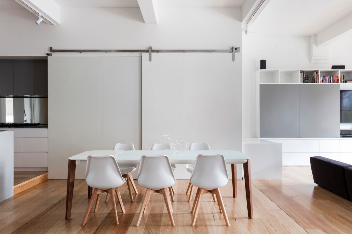 Minunatul apartament din Surry Hills, New South Wales, Australia se afla in cladirea istorica Edwards&Co, care in 1920 a fost o fabrica de ceai. Misiunea arhitectei Josephine Hurley a fost sa creeze din cei 300mp utili ai ultimelor doua etaje un apartament pe doua niveluri. Nivelul inferior este iluminat de niste goluri arcuite de dimensiuni considerabile care aduc lumina naturala si scalda spatiul interior, fapt ce a determinat si amplasarea la acest nivel a unui studiou cu pian.