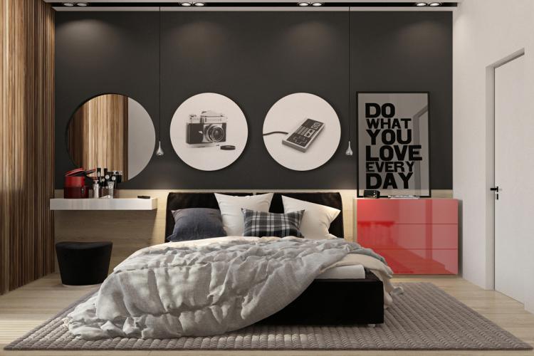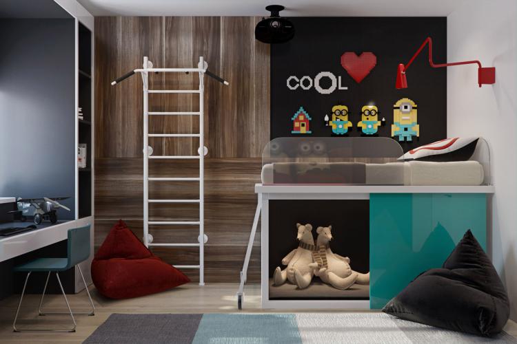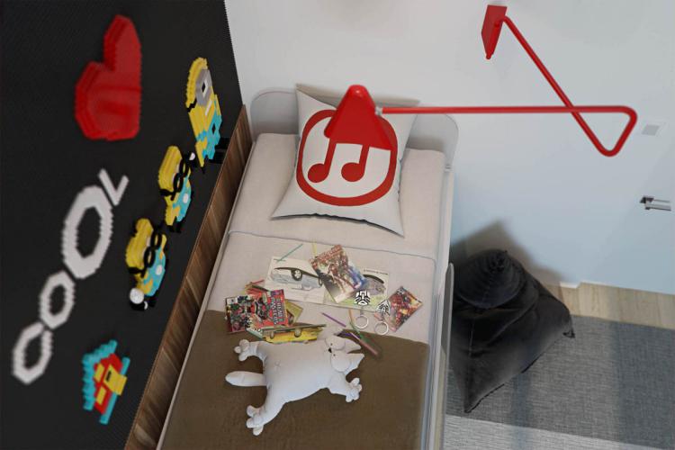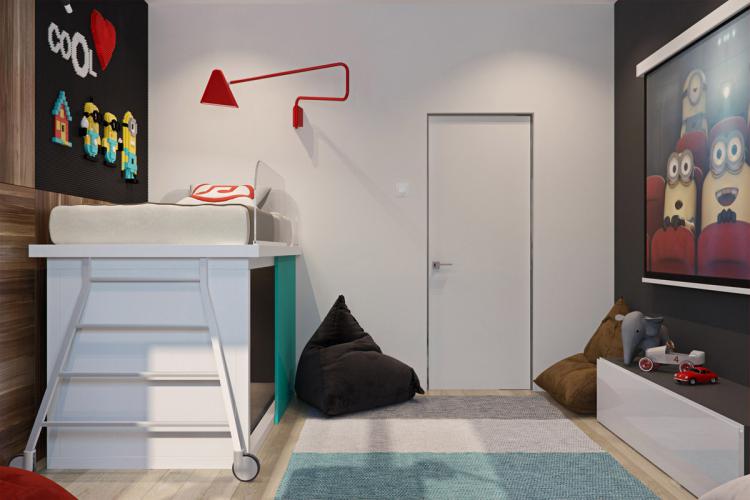 Un apartament interesant, cu o suprafata de 135mp pentru o familie de tineri casatoriti si copii lor a fost amenajat de catre designerii Aleksei si Victoria Oseiko. Beneficiarul – cantaret, sotia lui – fotograf. Datorita acestor parametri, apartamentul mai include pe langa spatiile traiului obisnuit un laborator foto, o galerie si un studio de muzica.