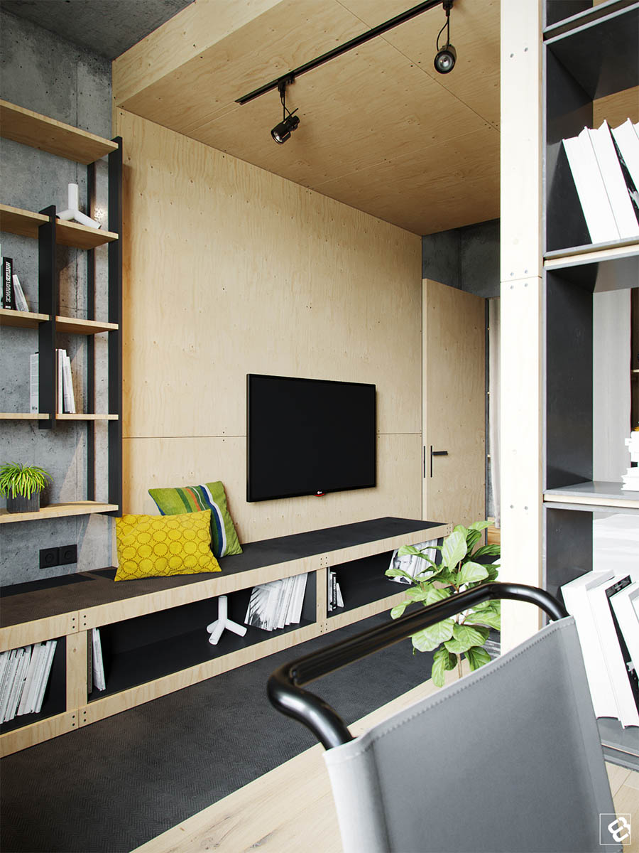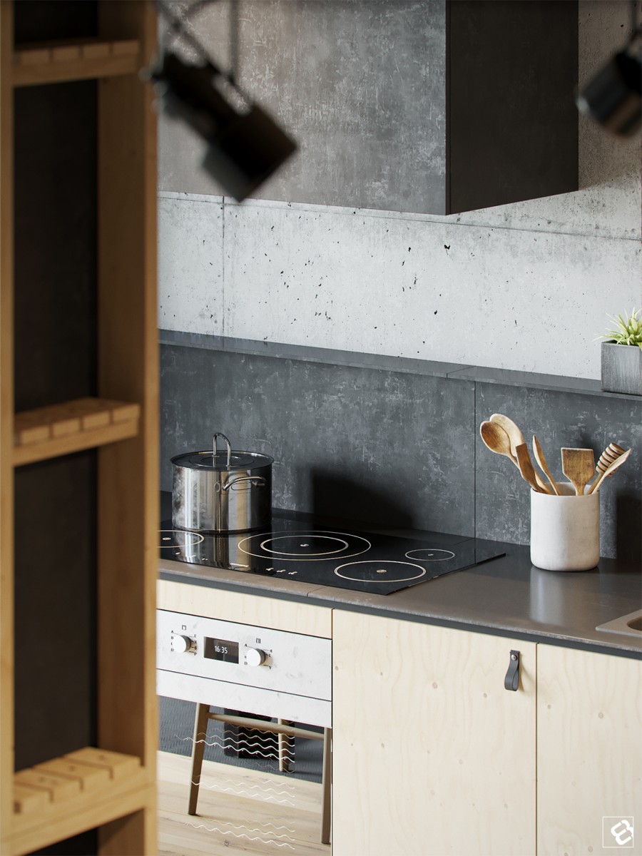 Uneori, un interior frumos incepe cu o singura idee. Asa a fost si cazul locuintei de 72mp din orasul Minsk, Belarus realizata de designerul de la Form’8 Studio. Locuinta conceputa pentru un fotograf de succes a inceput numai cu doua elemente: beton si lemn. Peretii si plafoanele din beton sunt originale cladirii, in timp ce parchetul, rafturile si dulapurile de lemn au fost adaugate pentru a crea o senzatie mult mai calda si primitoare. Un amestec de elemente de ultima generatie, scaune de lux, mai multe elemente realizate manual, cum ar fi mobilierul din paleti, fac in cele din urma un spatiu creativ si frumos, in care te simti binevenit.