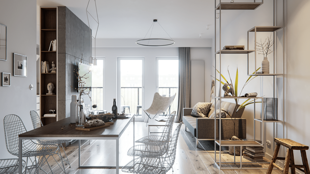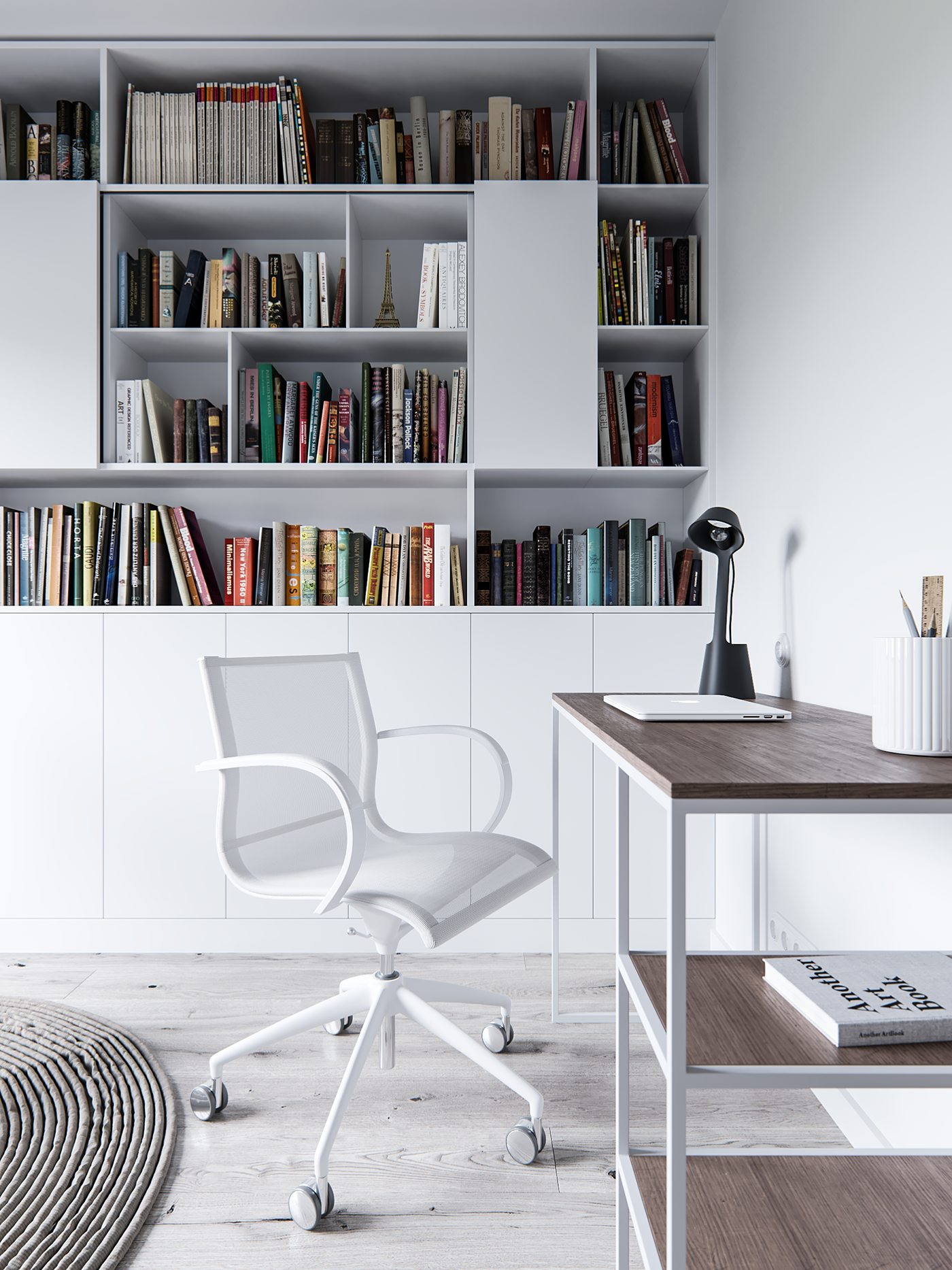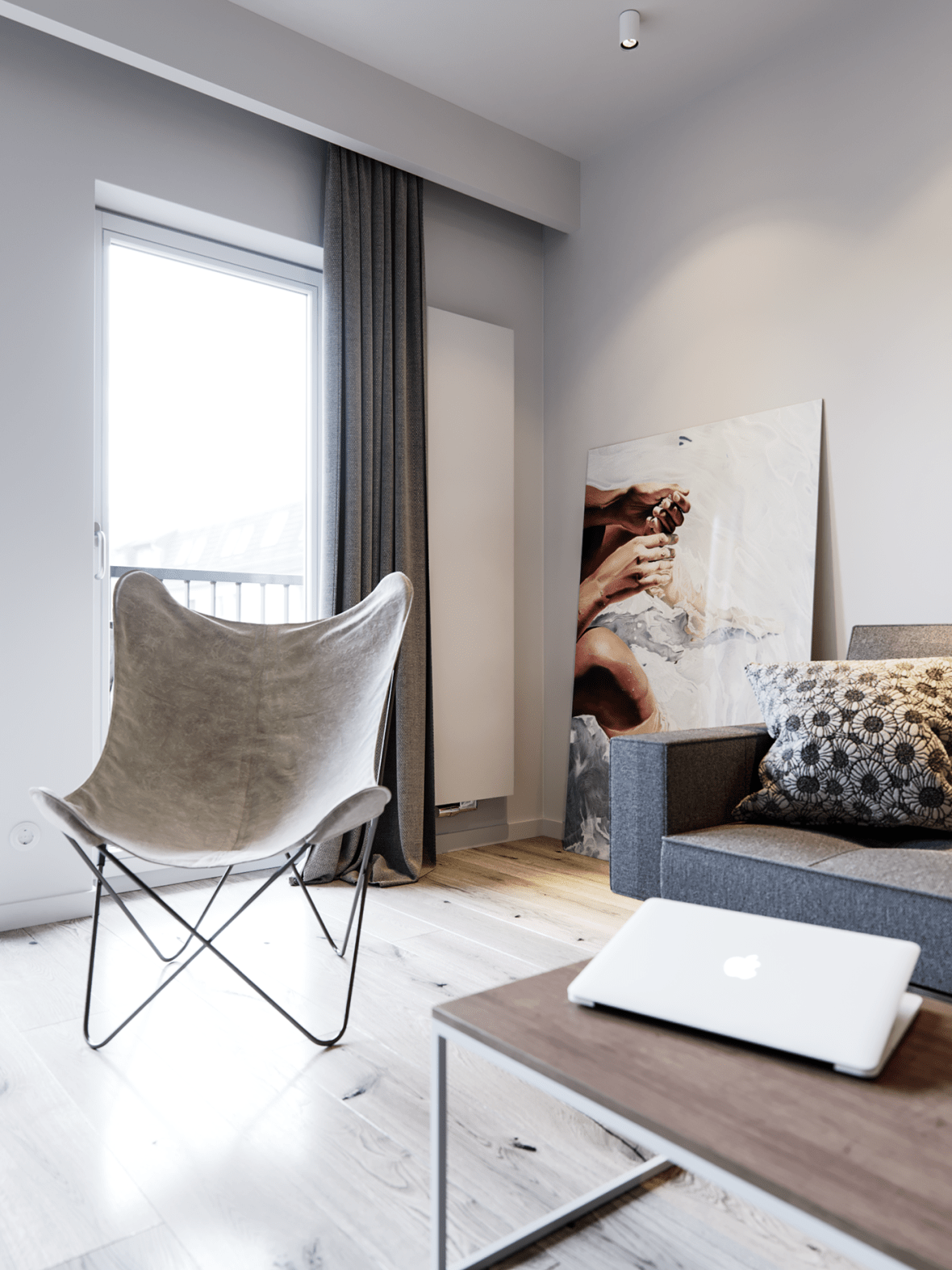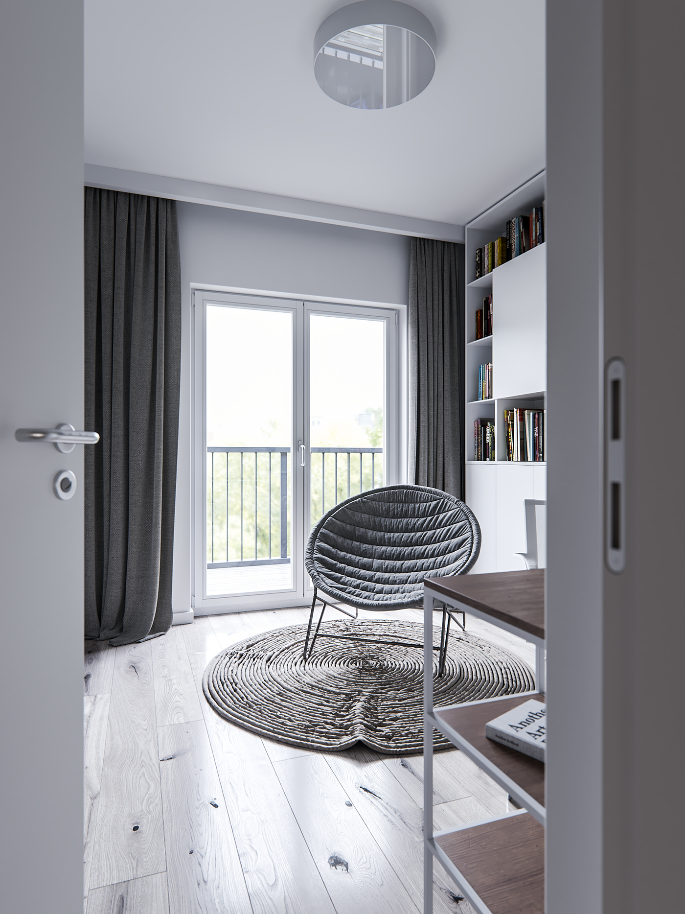 Ce ai face cu o camera suplimentara in apartamentul tau? Cel mai frecvent ai gasi-o utila pentru o camera de oaspeti , in timp ce artistii pot crea un studio, un birou sau un spatiu de relaxare. Designerul Dmytro Mesaksudi al acestui apartament cu un singur dormitor, a avut o abordare diferita ce a tinut cont de nevoile beneficiarului, a transformat camera intr-un birou traditional cu o biblioteca. Apartamentul inteligent compartimentat are un aspect luminos si semi-deschis. Tema decorului se situeaza undeva intre minimalismul industrial si cel contemporan, un amestec de materiale naturale si cele inspirate din mediul urban, care ajung intr-o zona intermendiara al celor doua influente estetice.