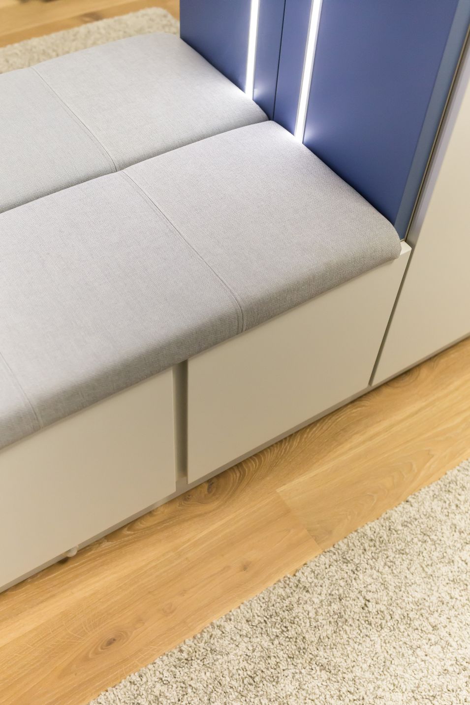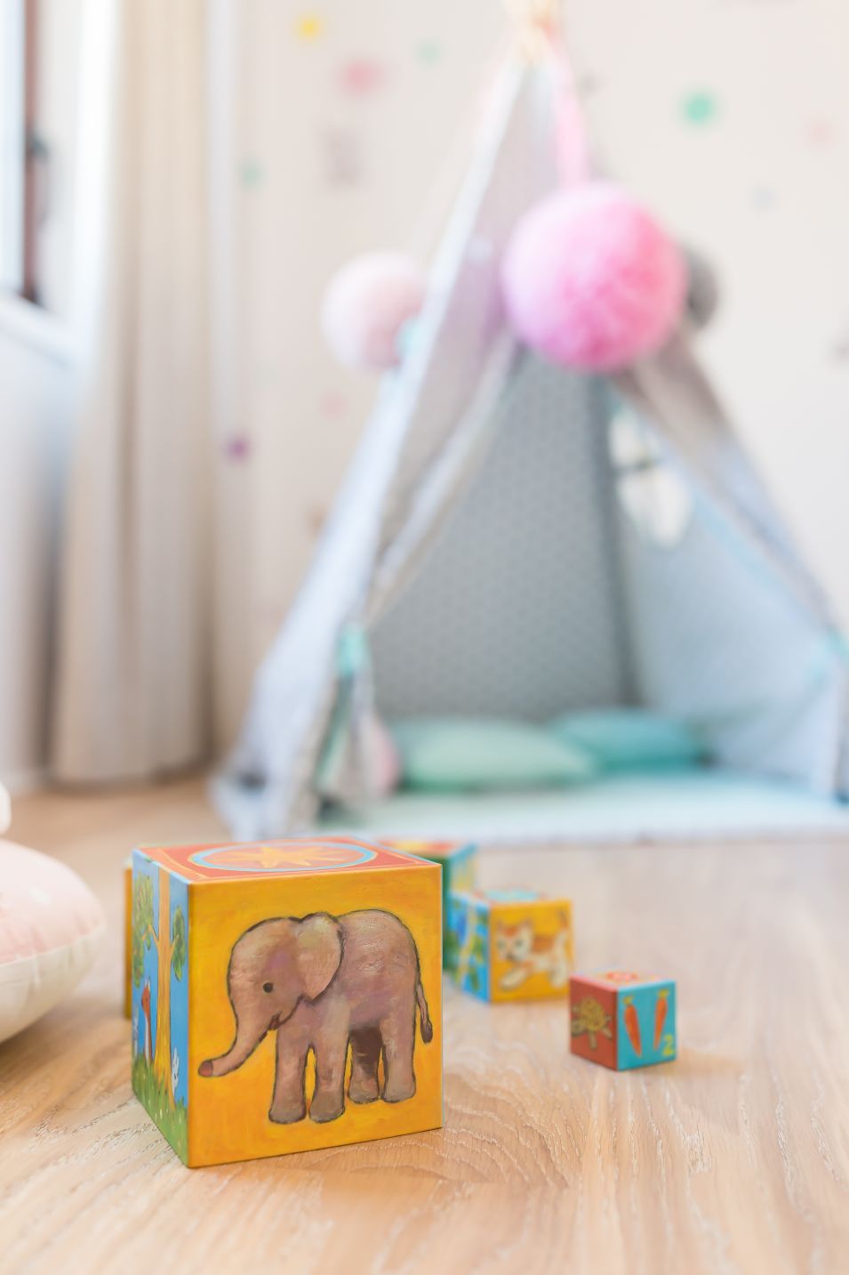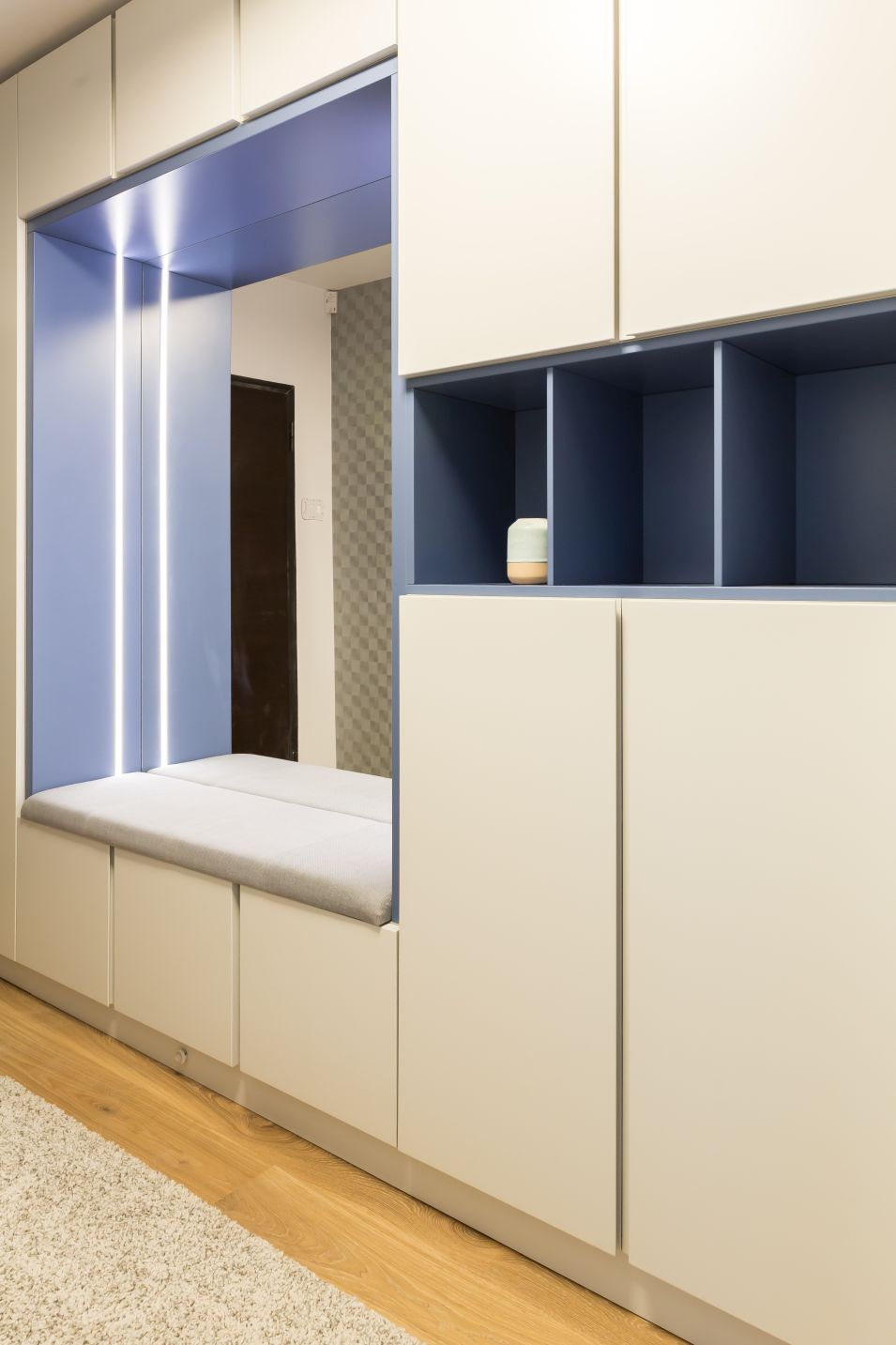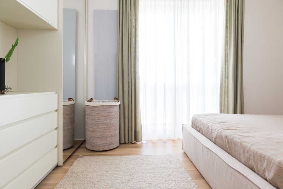 Linii geometrice, volume clare, culori curajoase, aceasta ar fi descrierea pe scurt a apartament modern situat in zona de nord a Bucurestiului si amenajat de echipa JoocaStudio. Camera fetitei a fost amenajata dupa principiile Montessori: patul tip casuta plasat direct pe pardoseala, cortul si rafturile de jucarii joase dau libertate de miscare copilului, fara a avea nevoie de ajutorul parintilor. Camera de joaca a fetitei din zona camerei de zi, a fost separata de dining printr-un perete de sticla, astfel incat sa se pastreze unitatea vizuala a spatiului, dar sa fie si izolata fonic. Spatiul de zi este aerisit, amenajat in volume simple si culori naturale.