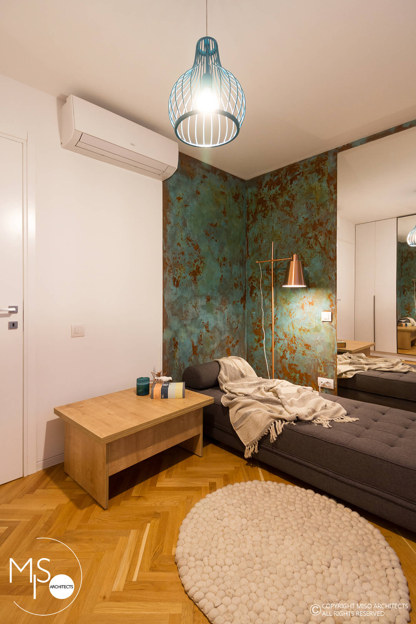Amenajarea a pornit că de fiecare dată de la dorinţele şi liniile trasate de client, în cazul de faţă au dorit multă culoare şi viaţa, acestea sunt cuvintele care îl descriu cel mai bine, aşa cum reiese şi din numele care i-a fost atribuit proiectului “Color Patina” – patină de culoare cu aluzie la vopseaua folosită în camera cea mai mică cu efecte de rugină, care poartă numele de “Patina Rust”.