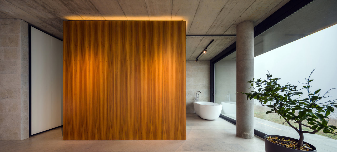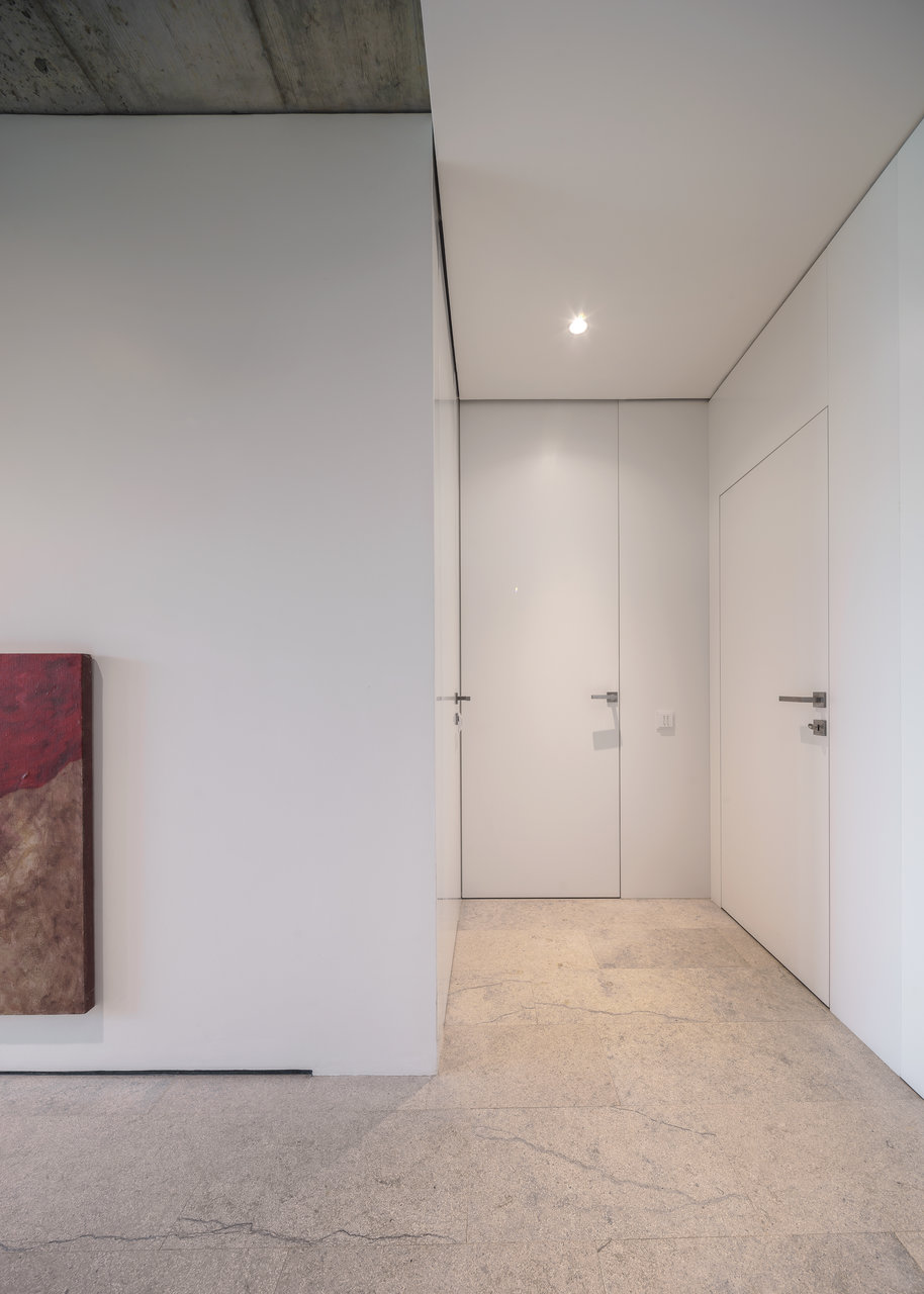 Zona nocturnă este legată de zonele de zi printr-un coridor cu depozitare, care caută, prin desen și iluminat, să diminueze cantitatea de informație vizuală și să realizeze un pasaj subtil între activitățile de zi și de noapte.