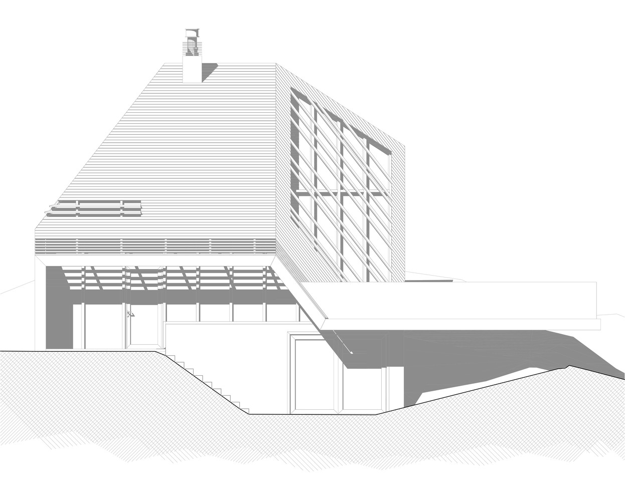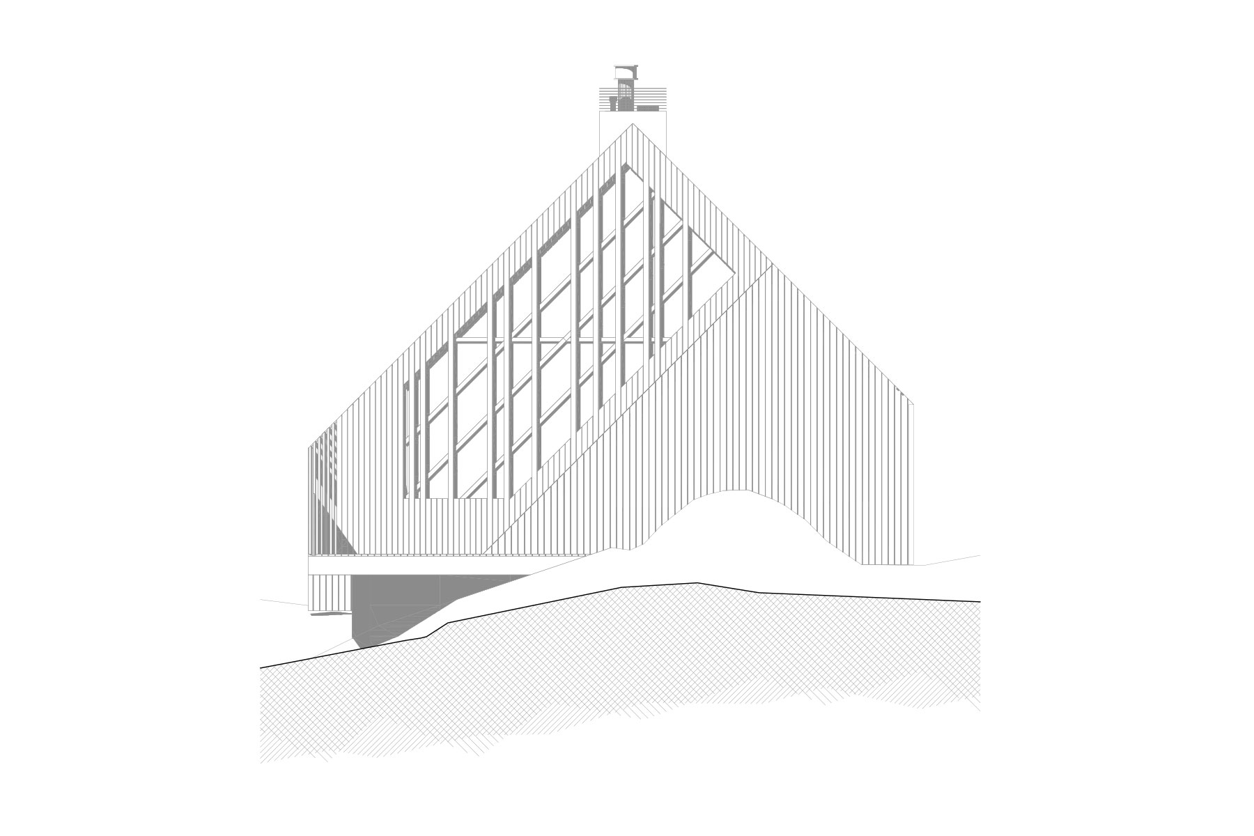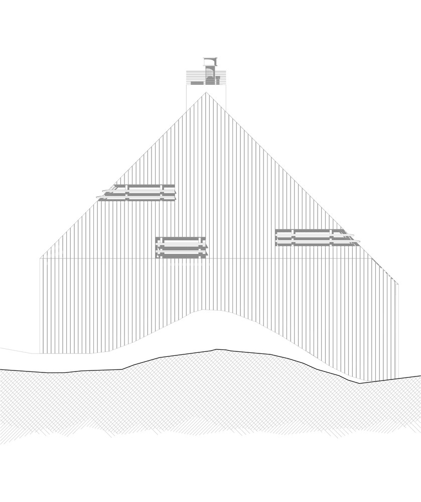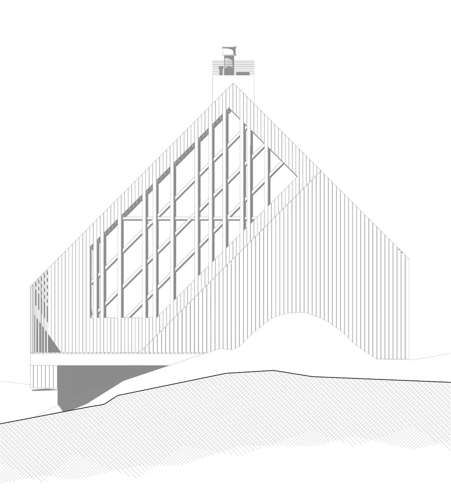 La nivel formal se poate identifica cu usurinta o compozitie volumetrica care seamana cu un diamant placat cu lemn. Aceasta forma a constructiei a fost determinata de conditiile meteorologie din zona, cat si elementele inconjuratoare – marea, lumina naturala, directia predominanta a vanturilor.