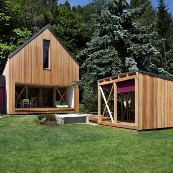 Casa simpla / Lemn, beton, acoperis verde